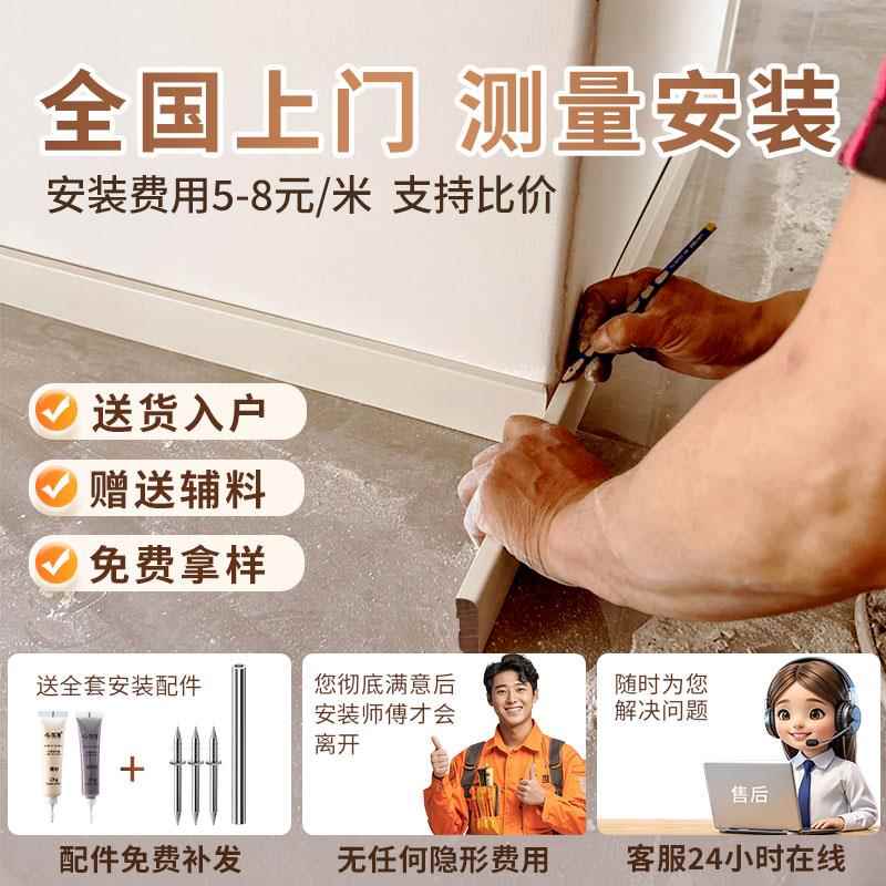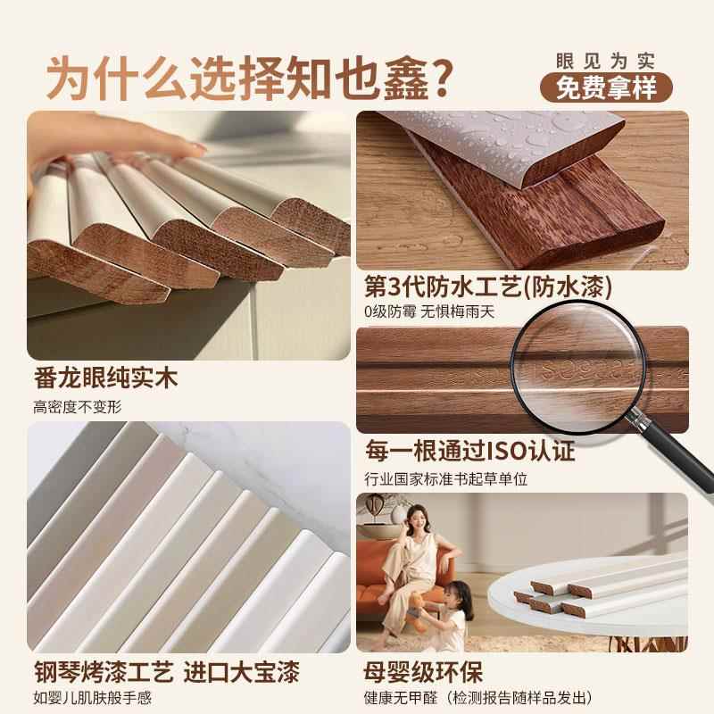 实木踢脚板家用番龙眼烤漆弧形黑色木地板贴脚线 线包安装木质踢