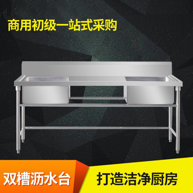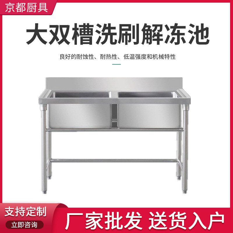不锈钢大双槽厨房水槽洗刷池 食堂洗菜盆洗碗水池双槽洗刷解冻池