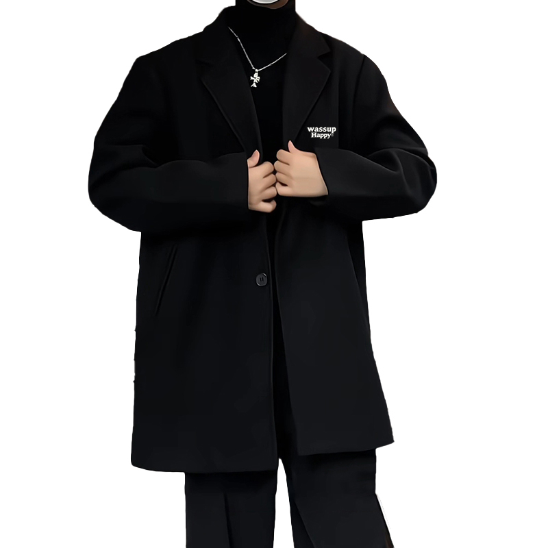 wassuphappy潮流百搭毛呢大衣男