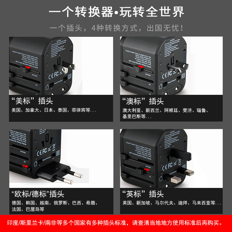 景赛万能转换插头出国旅行全球通用日本韩国欧洲英标美国澳规插座