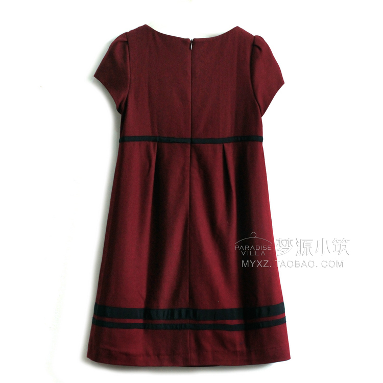 国内撤柜 春装甜美可爱宽松A字娃娃版显瘦羊毛呢料短袖连衣裙特价