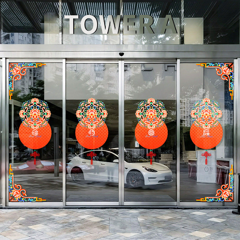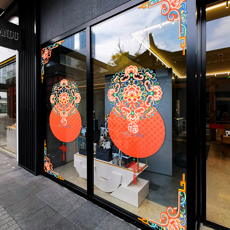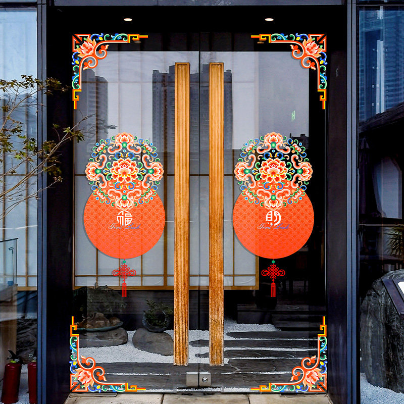 2026新年橱窗玻璃福字贴商场玻璃门中国结贴纸简约喜庆氛围窗花贴