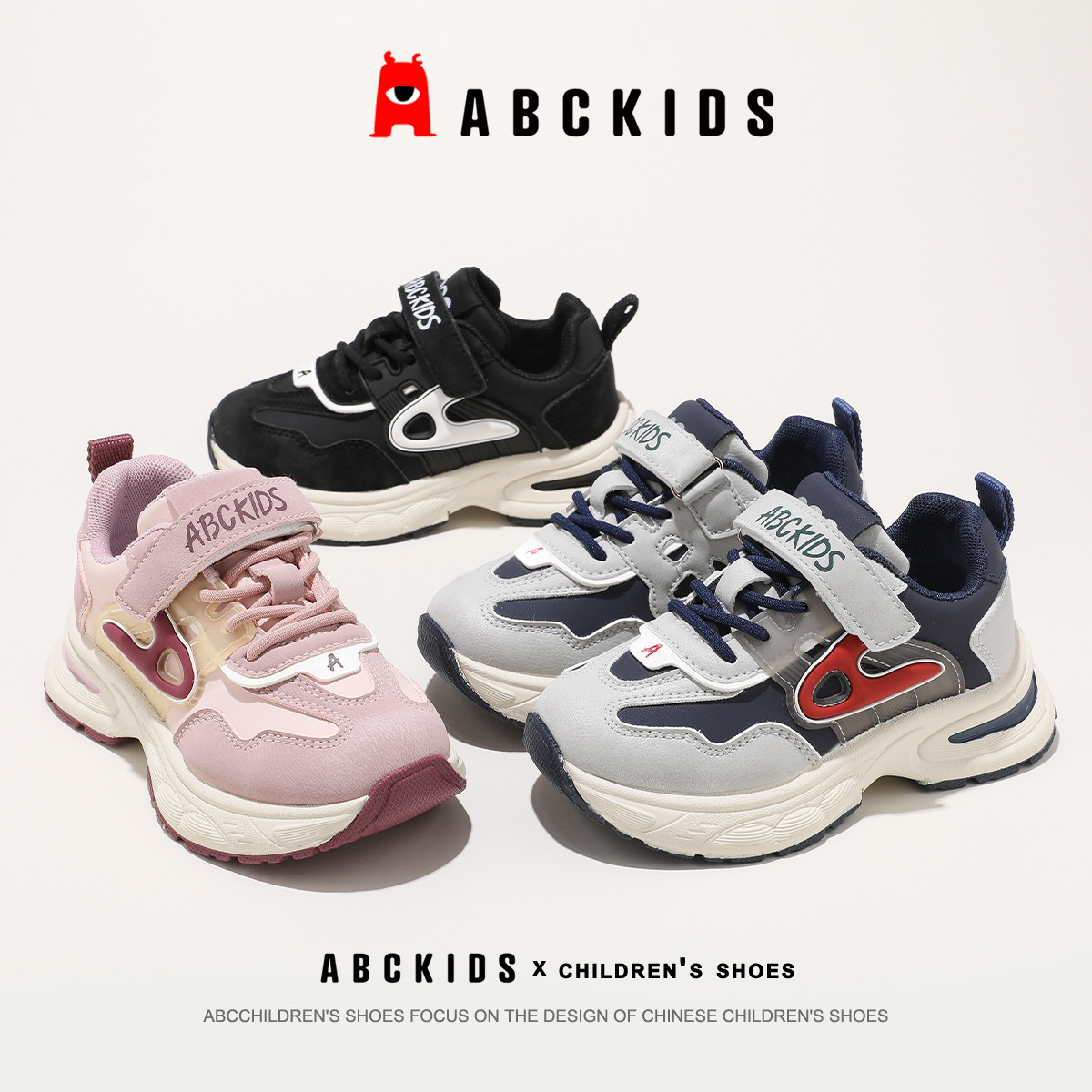 ABCkids童鞋男童运动鞋儿童秋季魔术贴款跑步鞋中大童休闲运动鞋