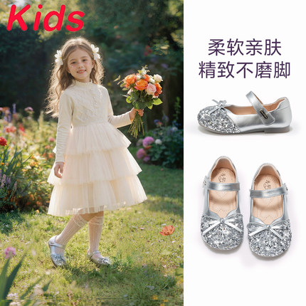 真皮公主鞋女童2026新款春季儿童鞋小皮鞋宝宝艾莎水晶鞋软底单鞋