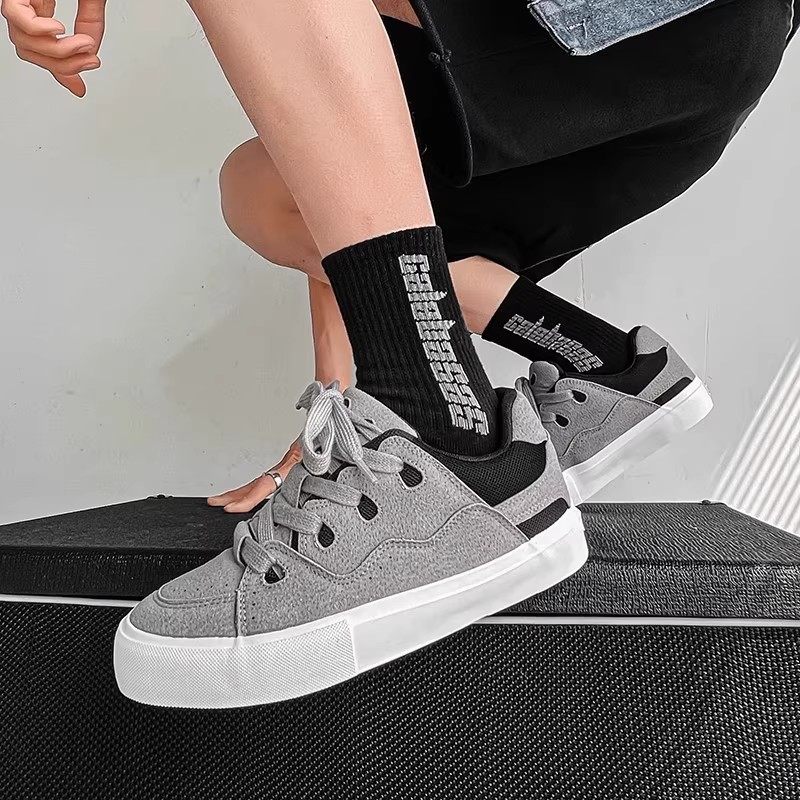 面包鞋男秋冬季新款翻毛皮男女滑板鞋百搭休闲运动小众帆布鞋