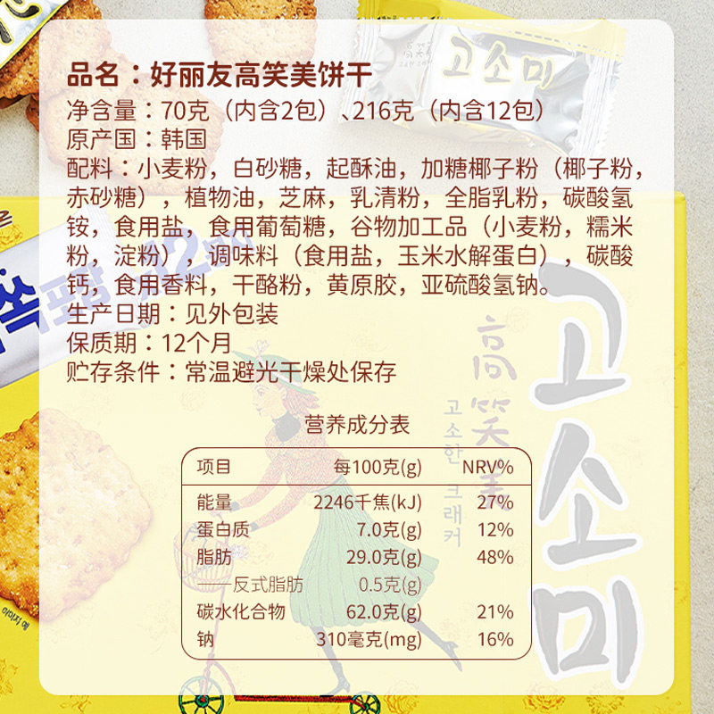 韩国进口好丽友高笑美芝麻薄脆早代餐饼干办公室休闲下午茶零食