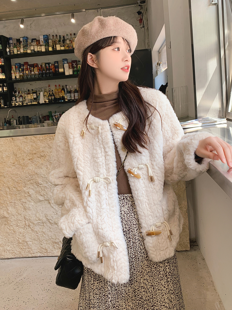 环保皮草水貂绒外衣女2025冬季新款加厚牛角扣小香风皮毛一体外套