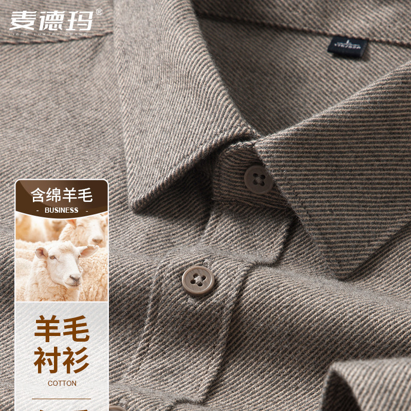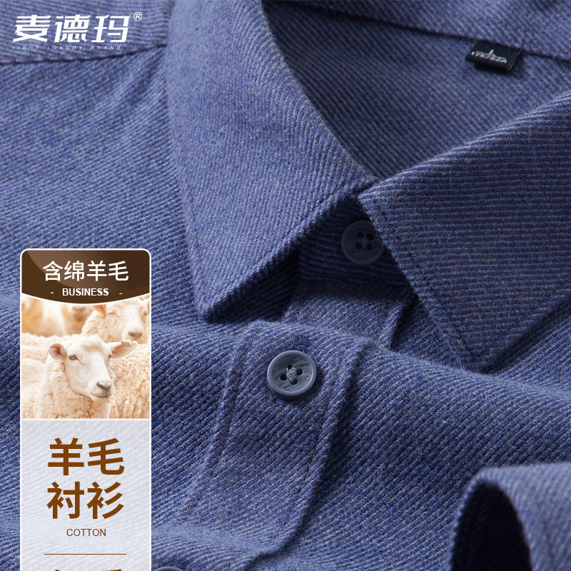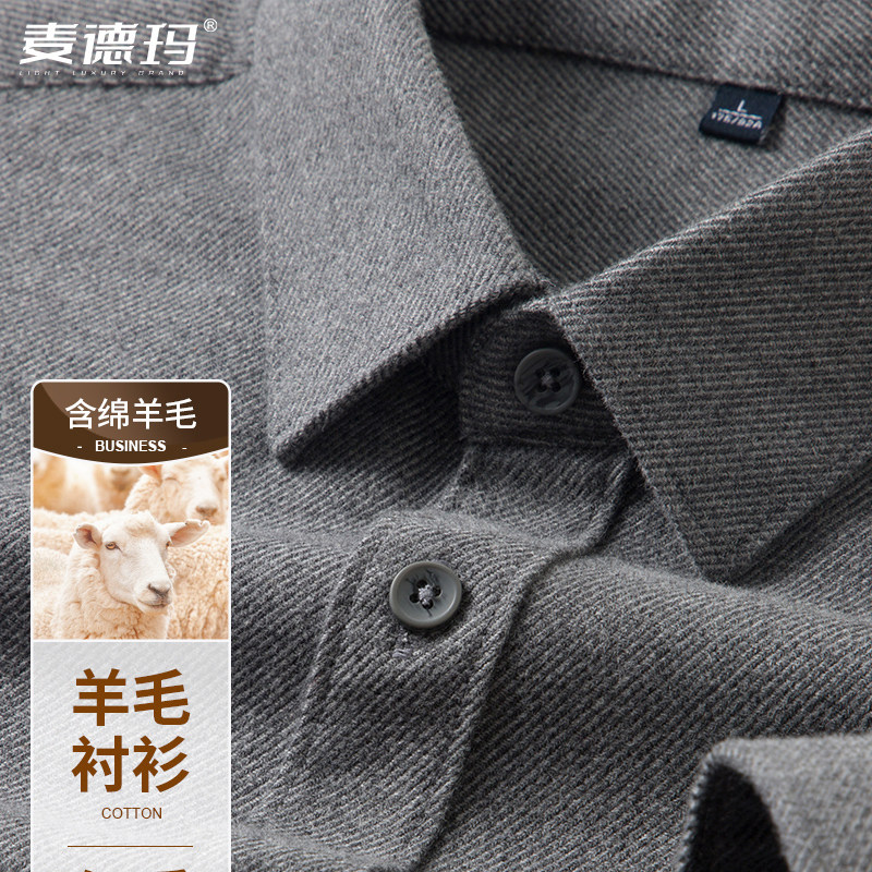 厚棉羊毛长袖衬衫男士磨毛衬衣