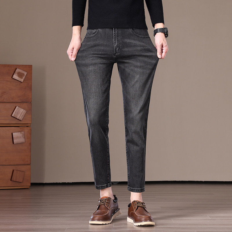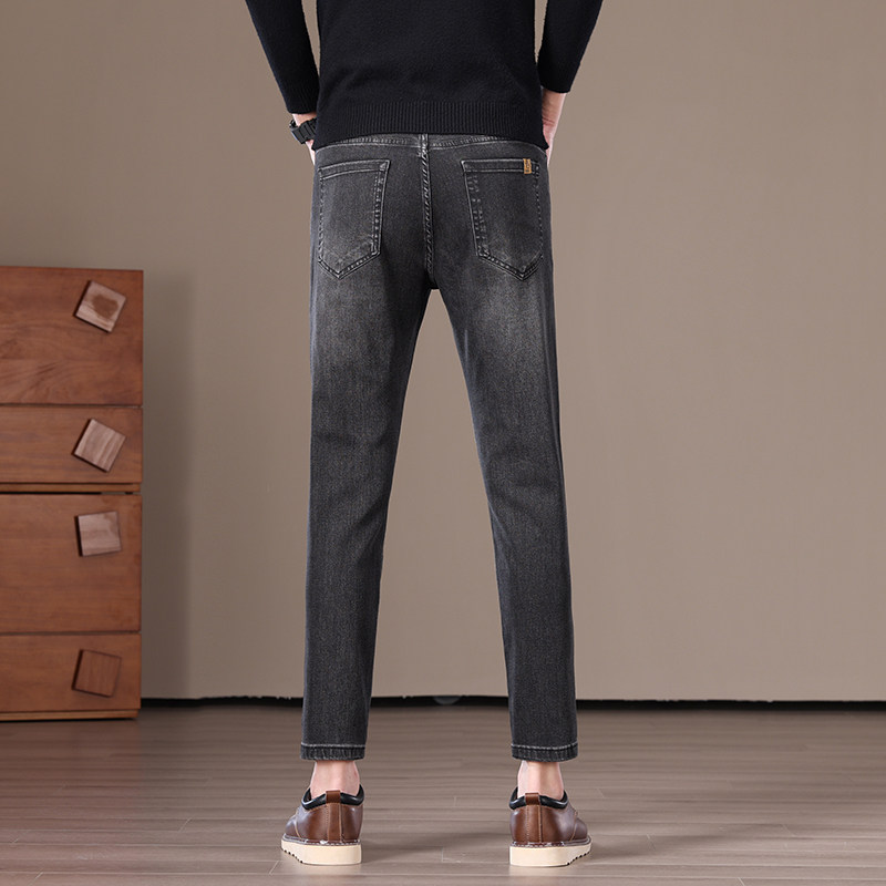 2025冬季高端九分牛仔裤男加绒加厚男士弹力修身小脚9分裤秋冬款