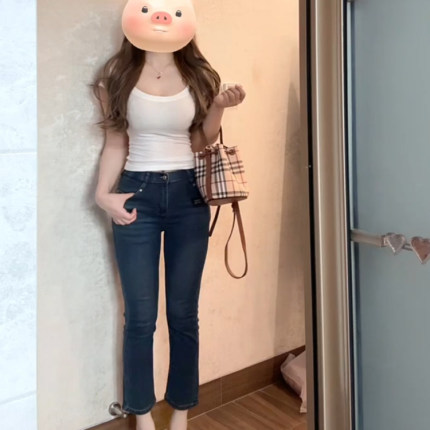 韩女气质丰胯好版型复古蓝牛仔裤女高腰显瘦弹力提臀九分直筒裤