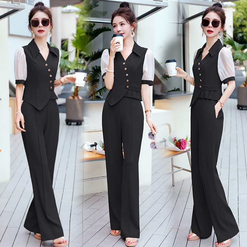 高端职业套装女2025夏季新款干练气质女神范薄款工装阔腿裤两件套