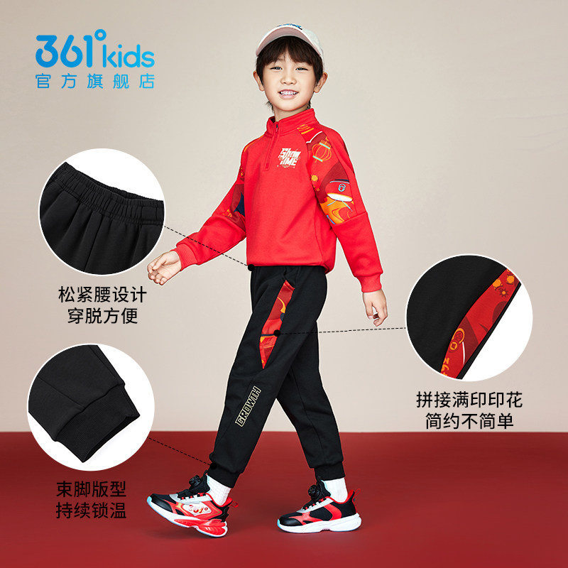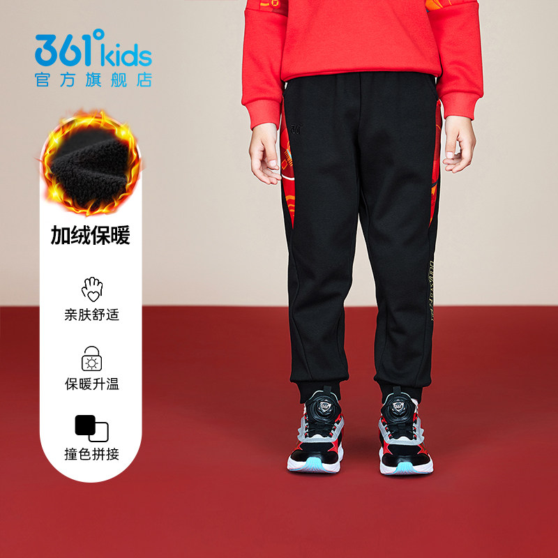 361°童装男小童针织加绒加厚长裤2025冬新款年装新年运动裤子