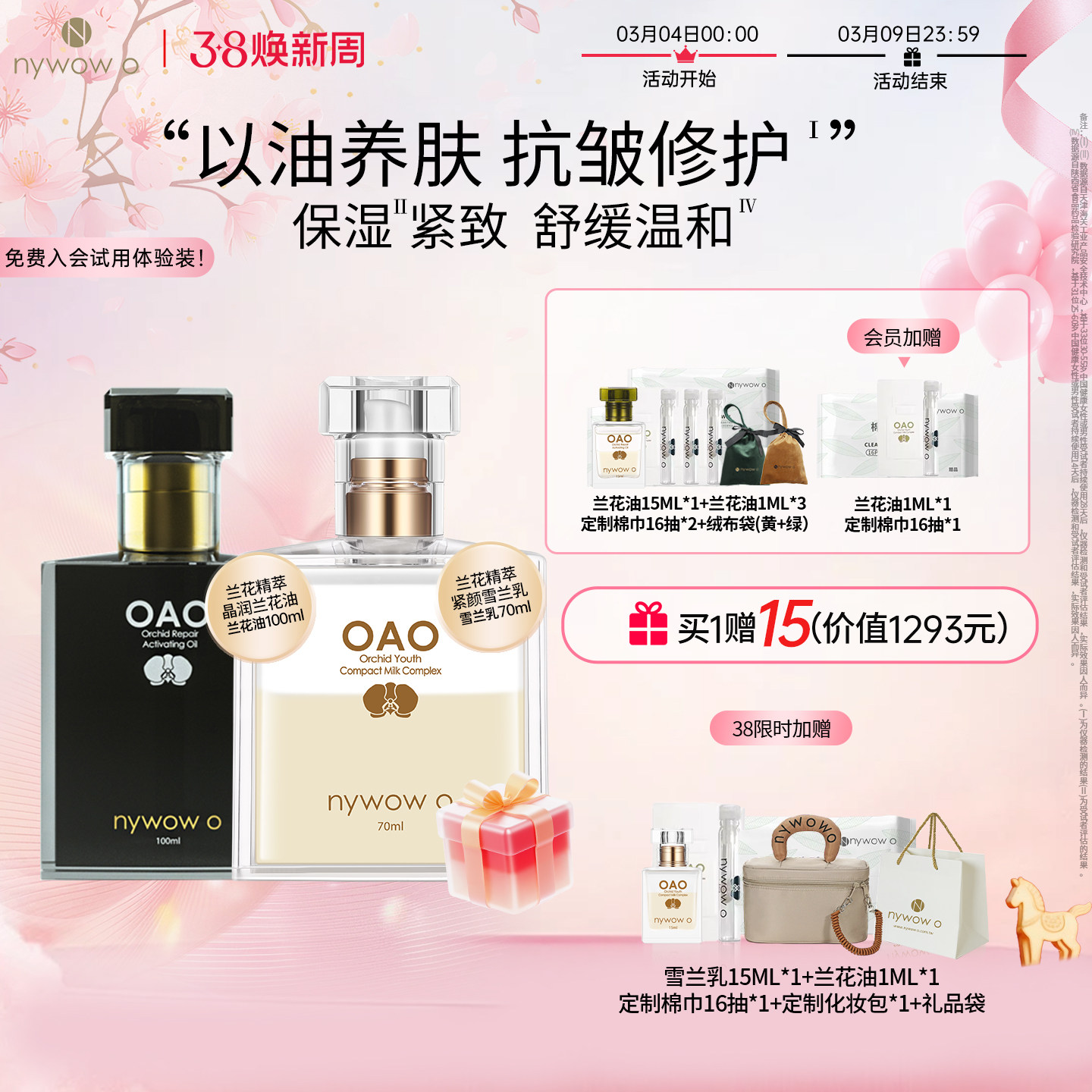 nywow o女娲oao兰花油雪兰乳组合抗皱修护保湿精华液