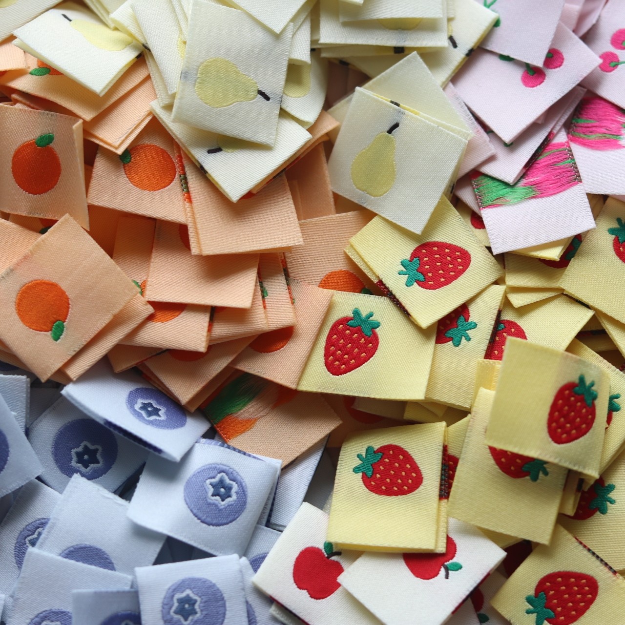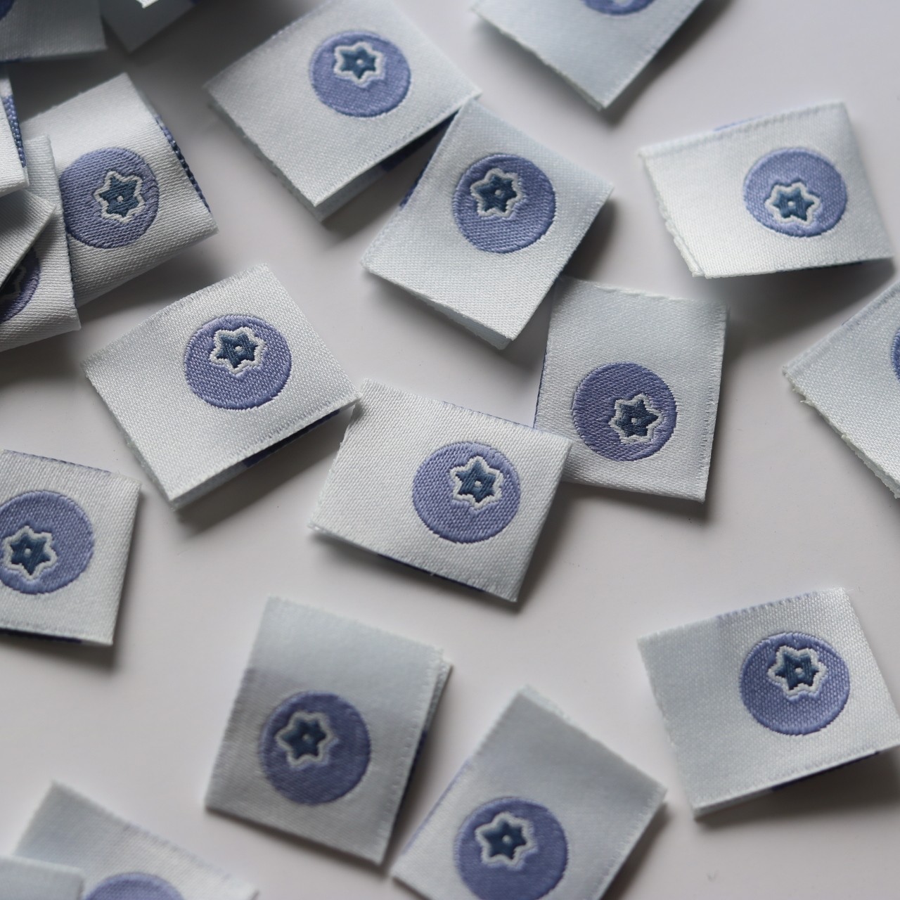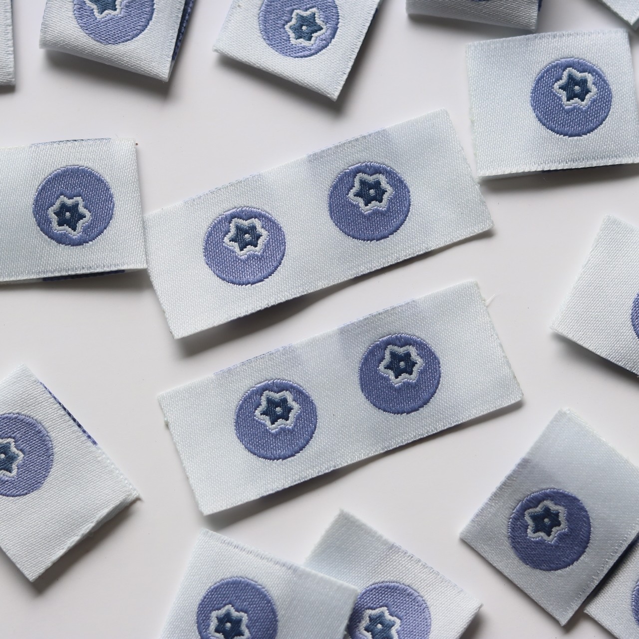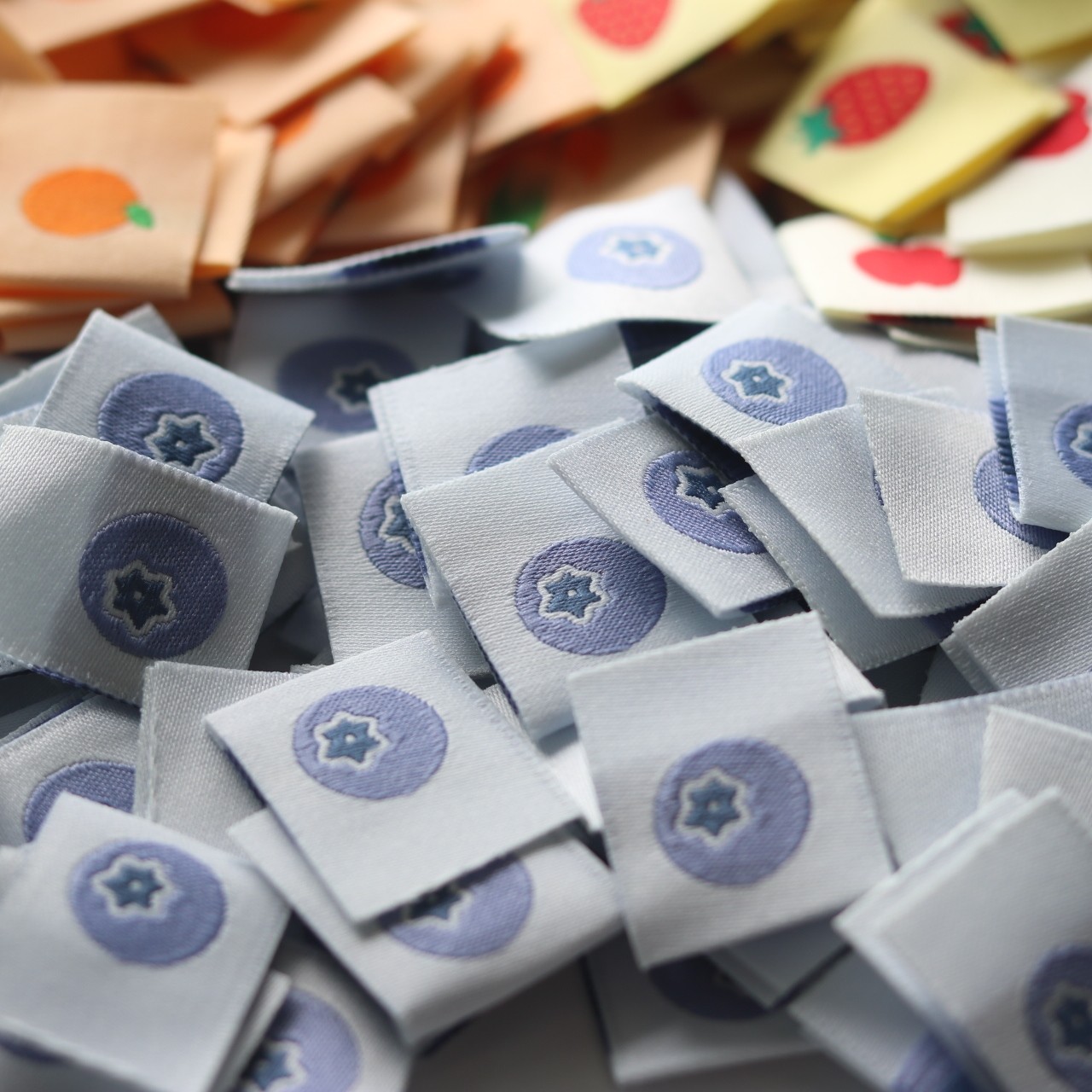 小蓝莓水果布标洗标手工辅料织唛手帐贴标签发圈对折标肠圈现货
