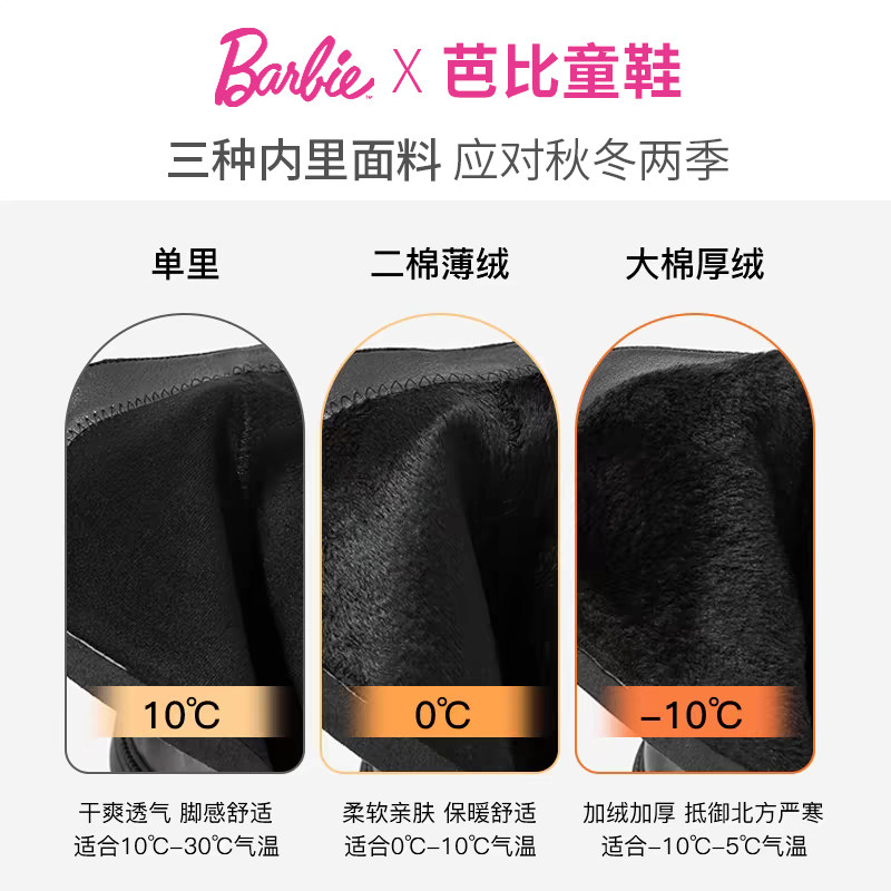 芭比童鞋儿童马丁靴女童靴子加绒2025新款秋冬短靴公主靴冬季棉靴