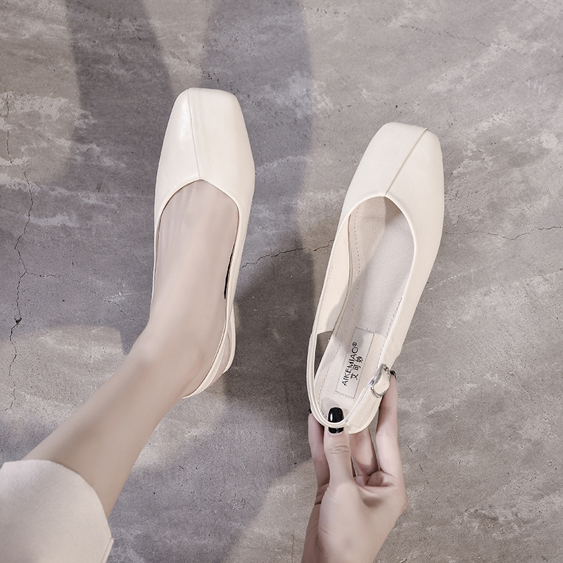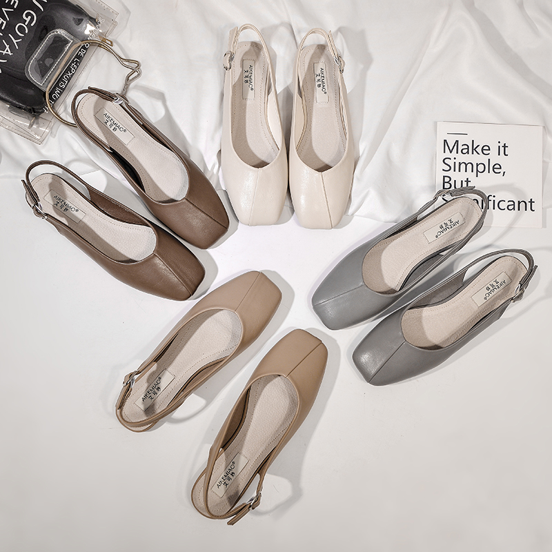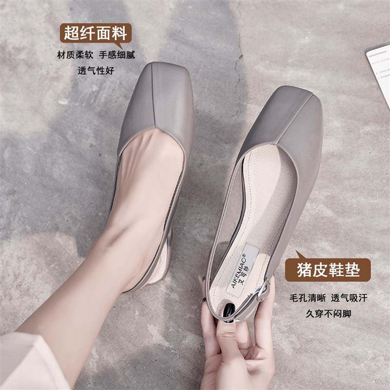 2023春夏新款平跟p包头女鞋时尚百搭后空凉鞋方头中跟软底奶奶鞋