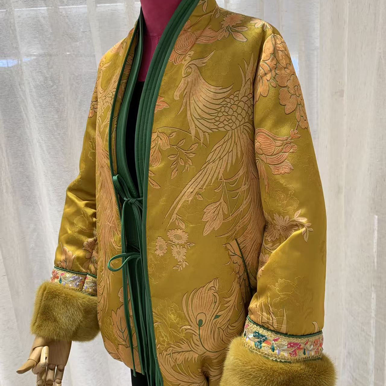 冬季新款气质V领水貂毛皮草外套女新中式鹅绒羽绒服保暖大衣