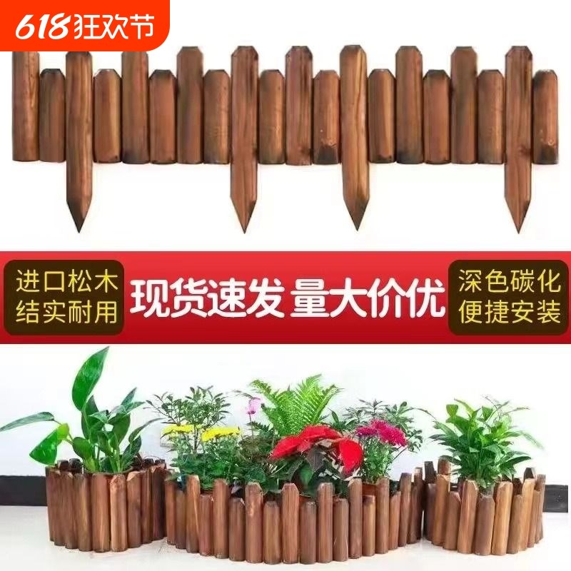 防腐木栅栏花园围栏户外庭院花坛插地小篱笆室外装饰木桩围墙护栏