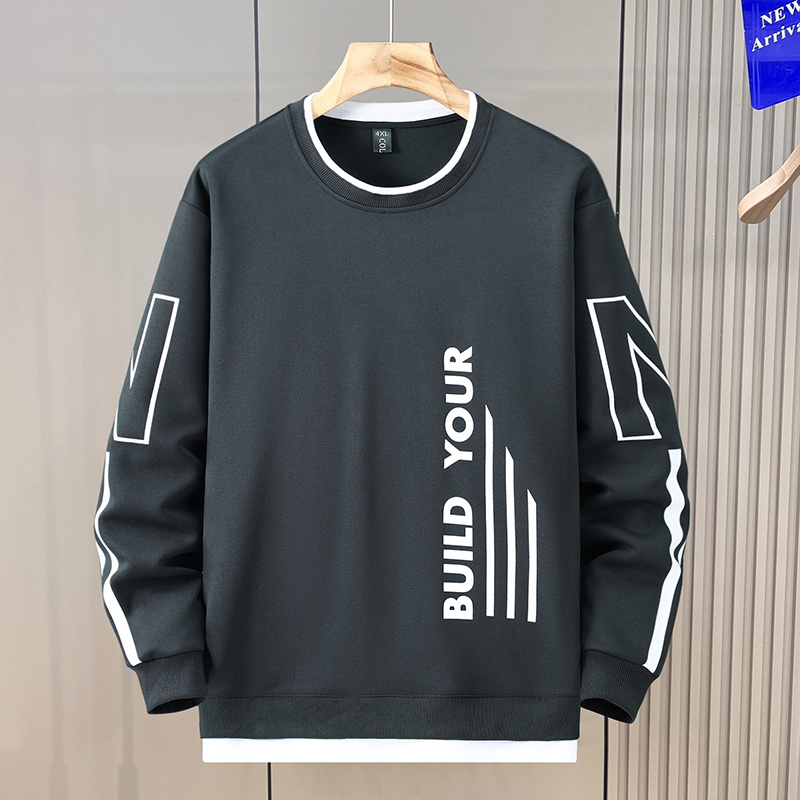 特大码假两件卫衣男春秋薄款长袖T恤加肥加大胖子宽松百搭打底衫