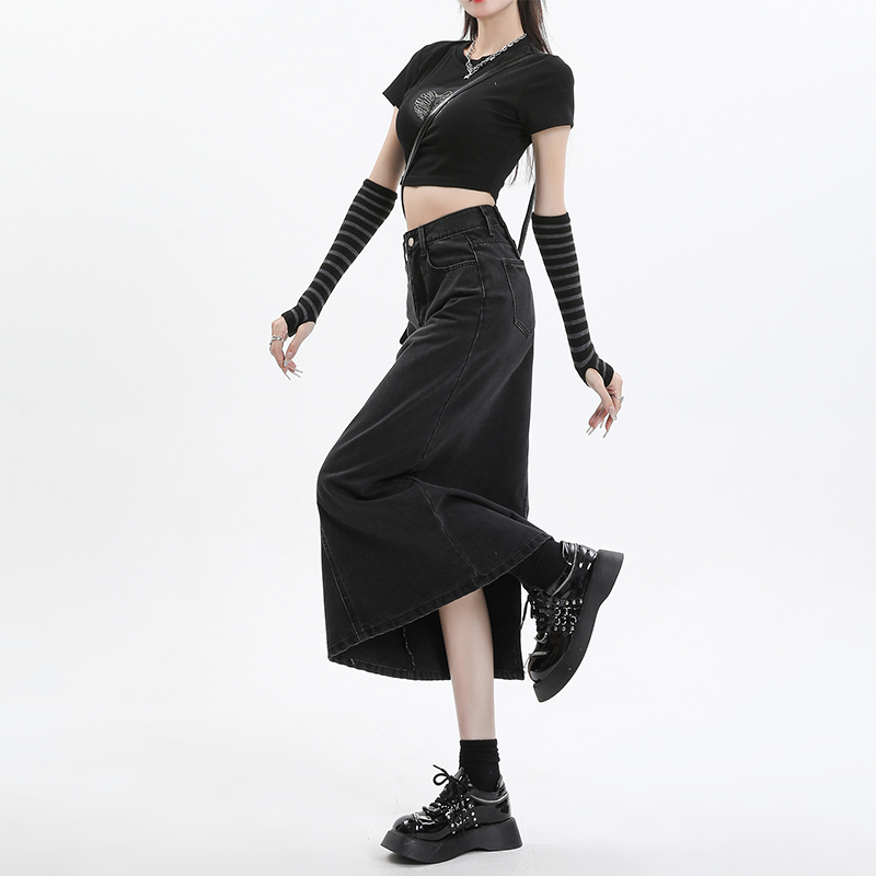 灰黑牛仔半身裙女高腰包臀裙2025新款直筒宽松a字中长半裙子秋冬