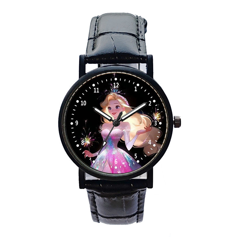 考试防水手表女孩中学生时装百搭石英表动漫卡通迪士尼公主电子表