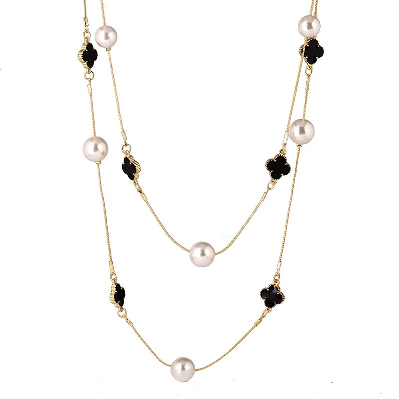 项链女长款韩版时尚气质百搭多层镂空玫瑰珍珠挂链装饰毛衣链挂件