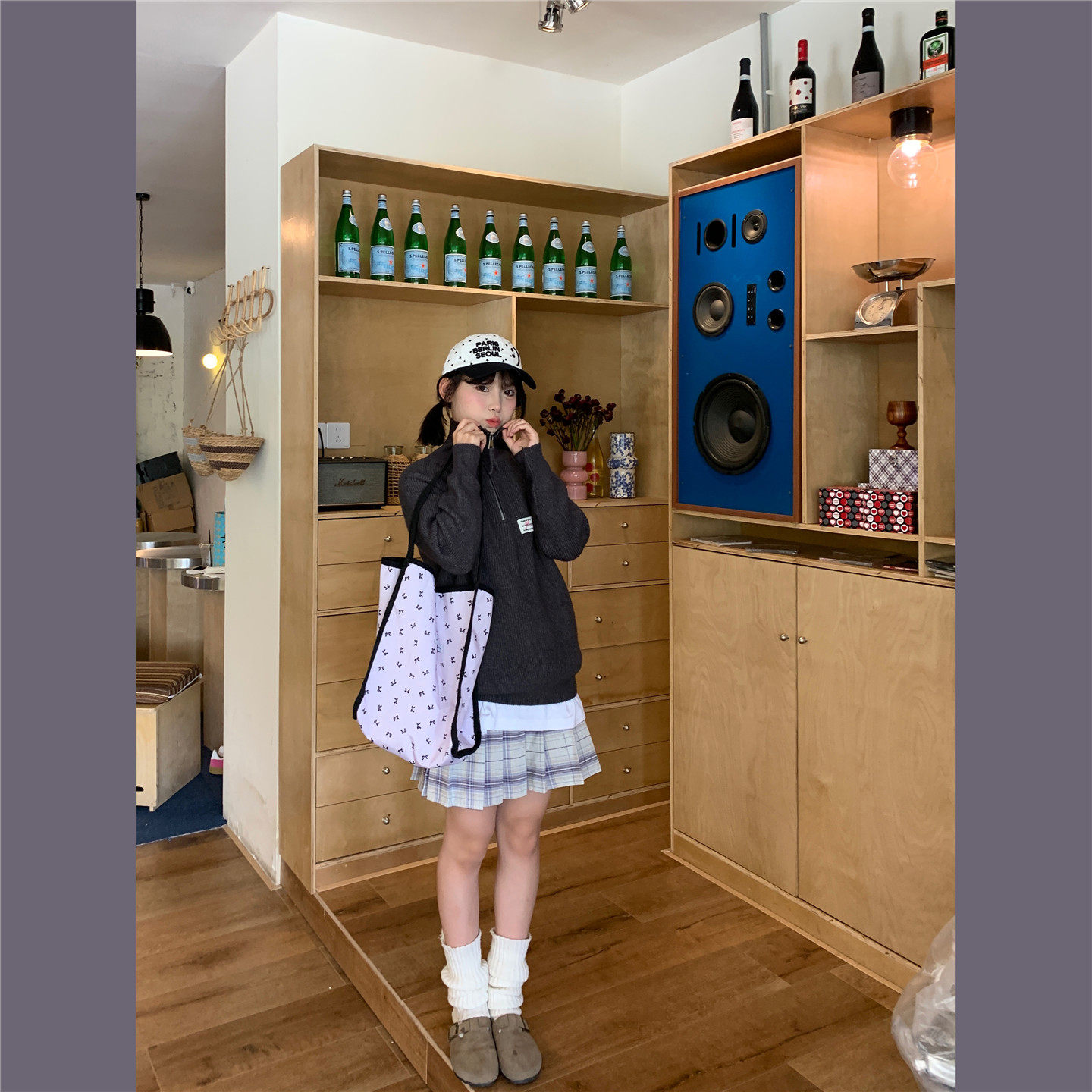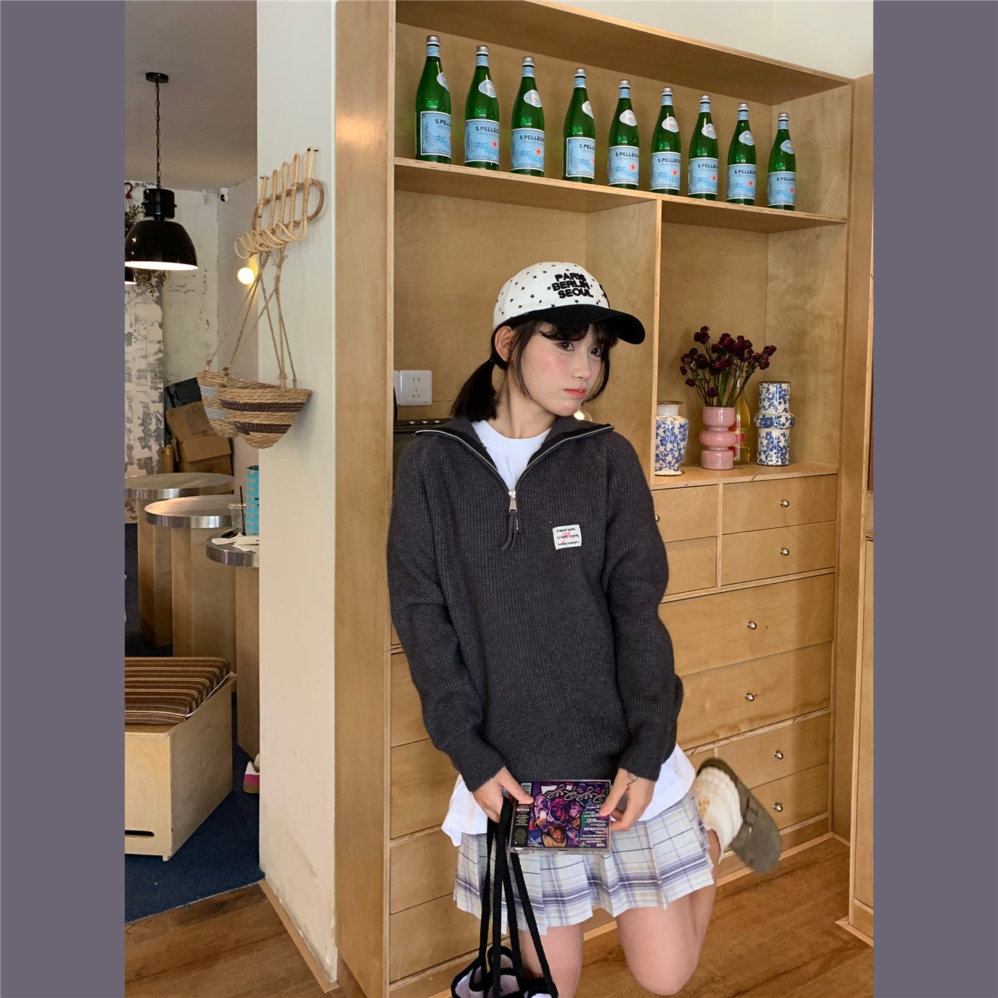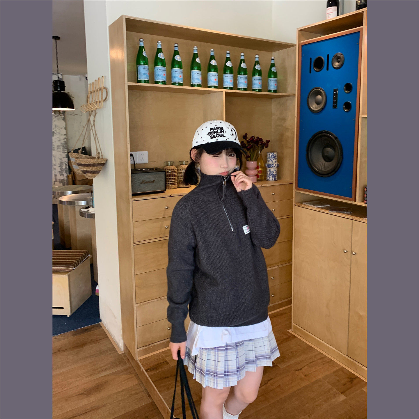 甜心轰炸机深灰色韩系半拉链高领毛衣女秋冬宽松休闲针织衫外套