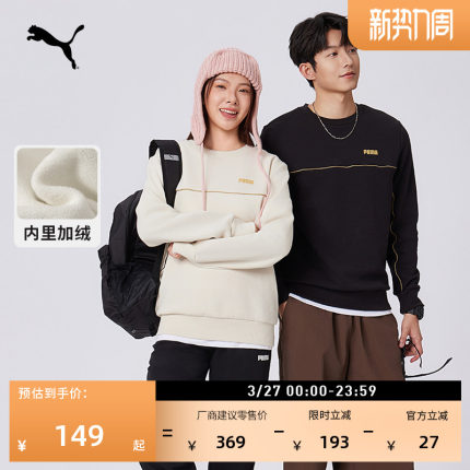 加绒保暖圆领长袖运动卫衣男女PUMA彪马官方冬白色加厚上衣692907
