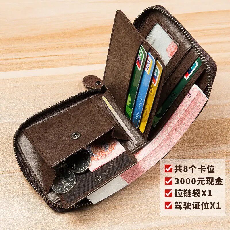 男女士钱包短款真皮拉链多功能纯牛皮卡包袋小钱夹皮零钱夹青少年