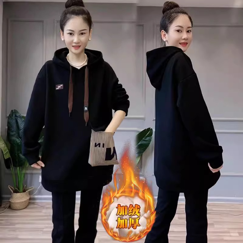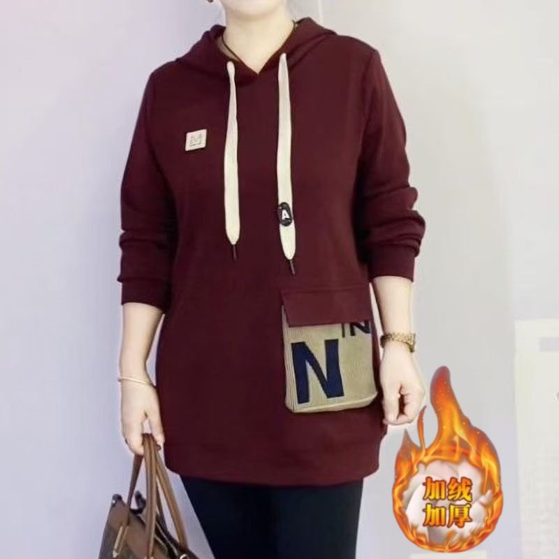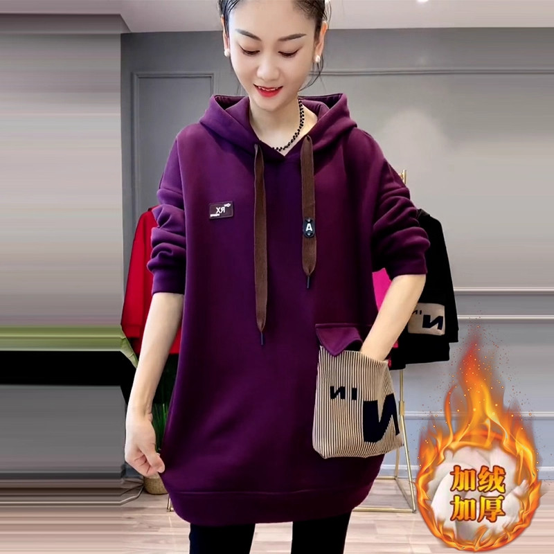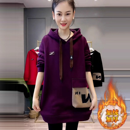 加绒加厚连帽卫衣女士2026秋冬装新款保暖设计感中长款遮屁股上衣