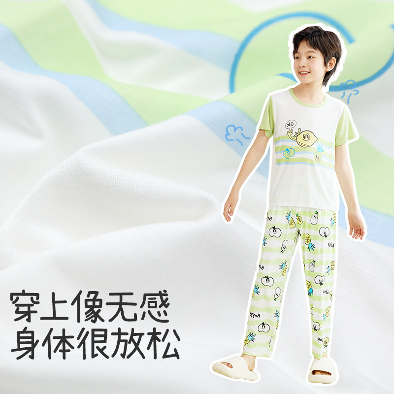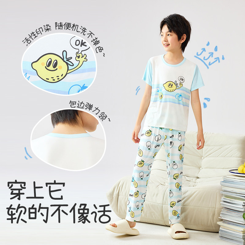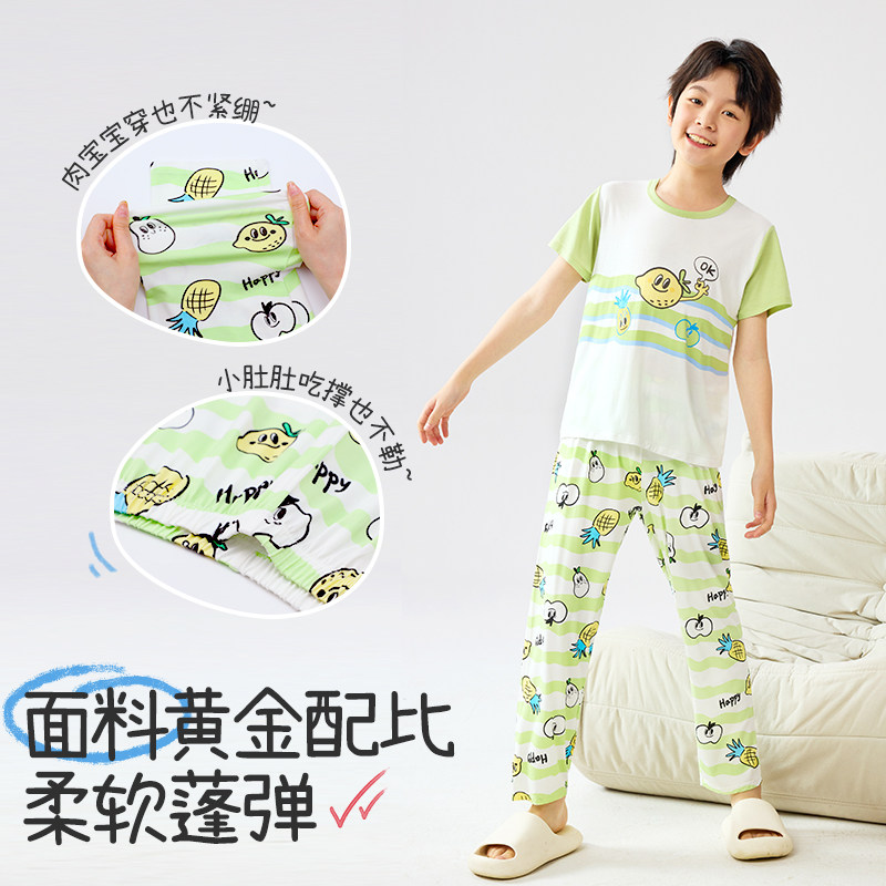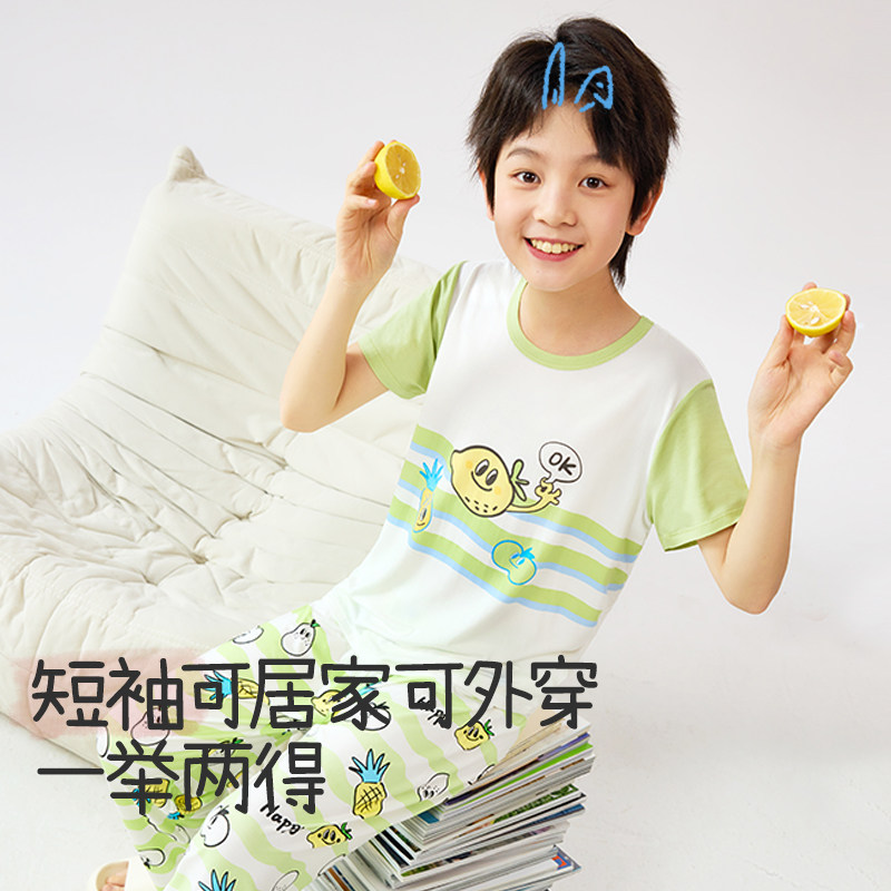 久岁伴儿童睡衣男童夏季家居服套装中大童宝宝舒弹透气短袖长裤