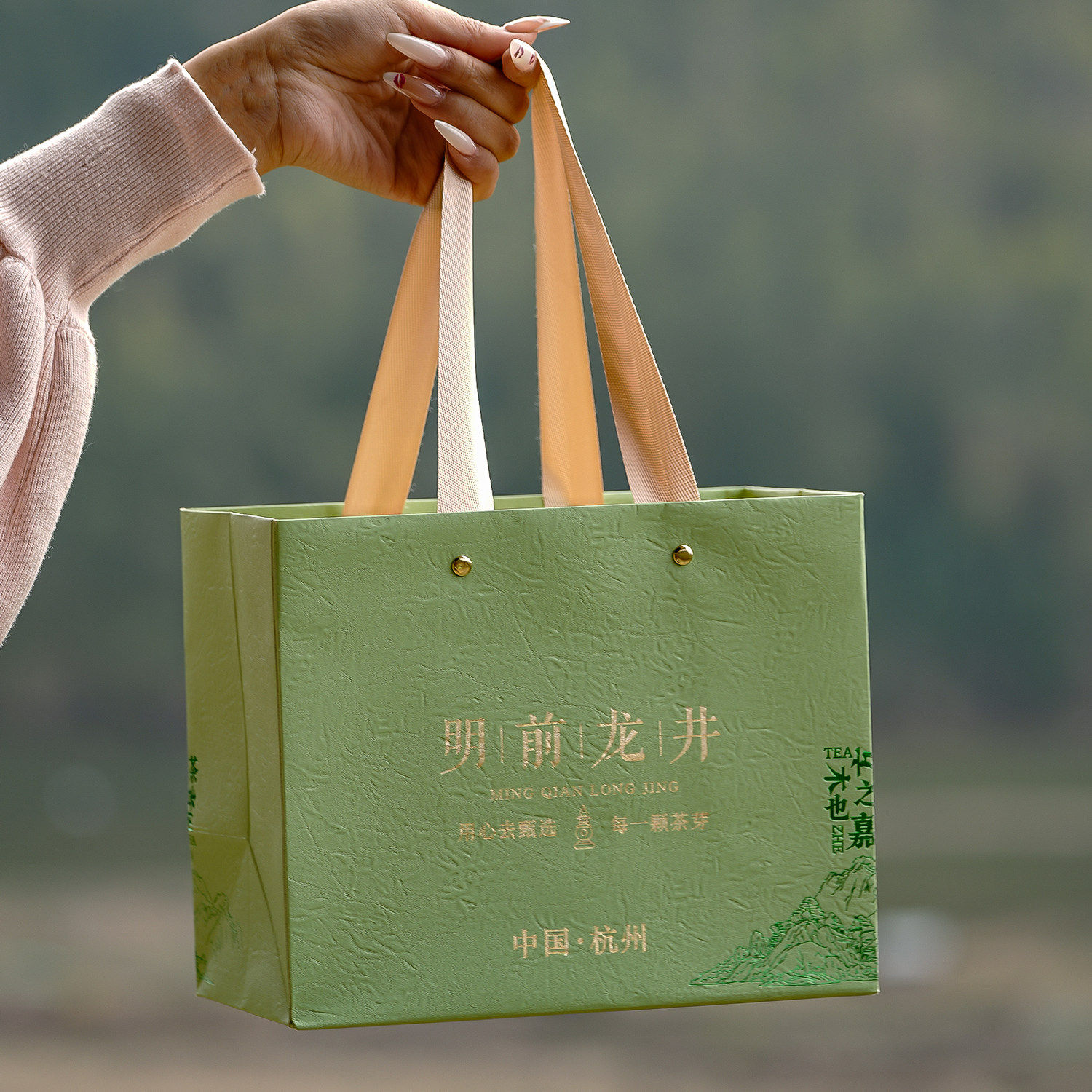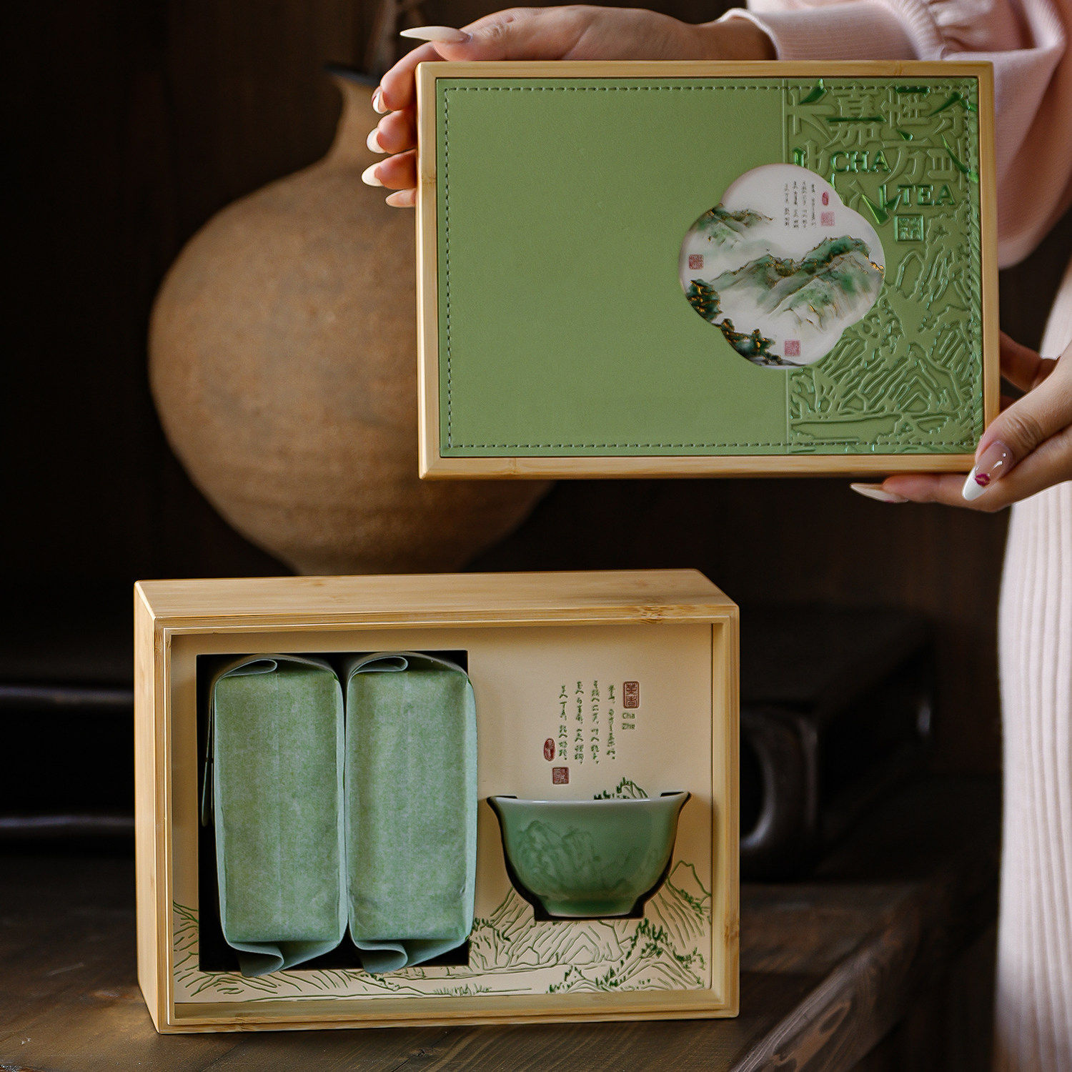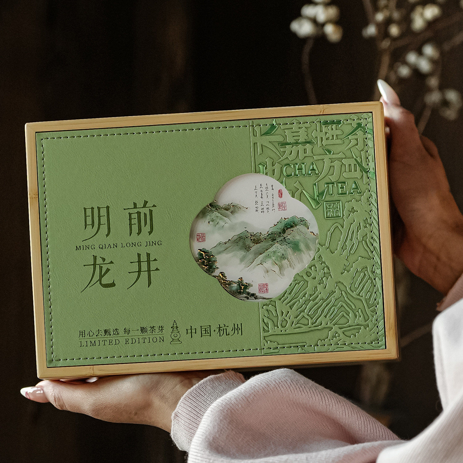 高档竹质明前龙井方包空礼盒