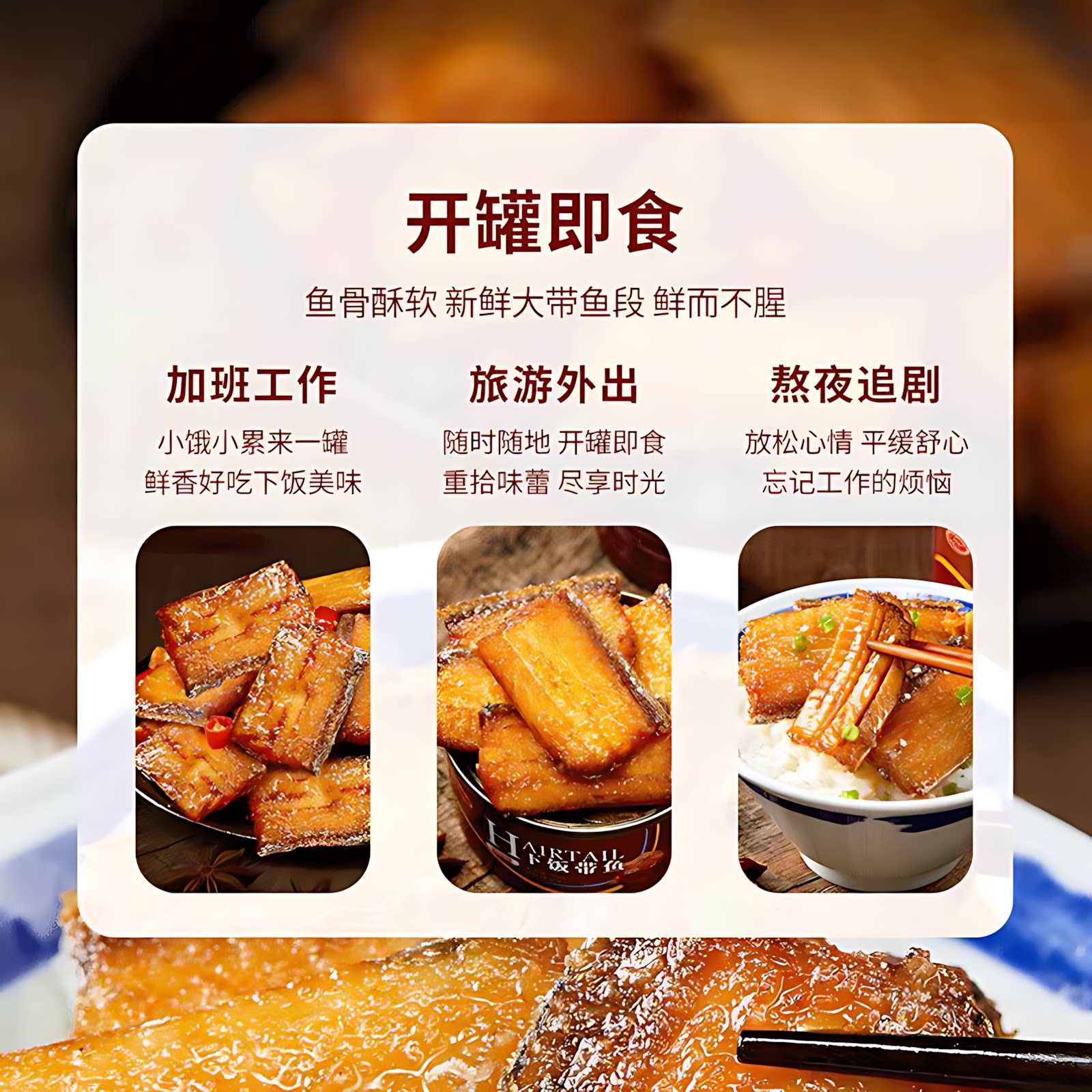 五香带鱼罐头香酥香辣中段带鱼即食海鲜熟食下饭菜速食网红小零食