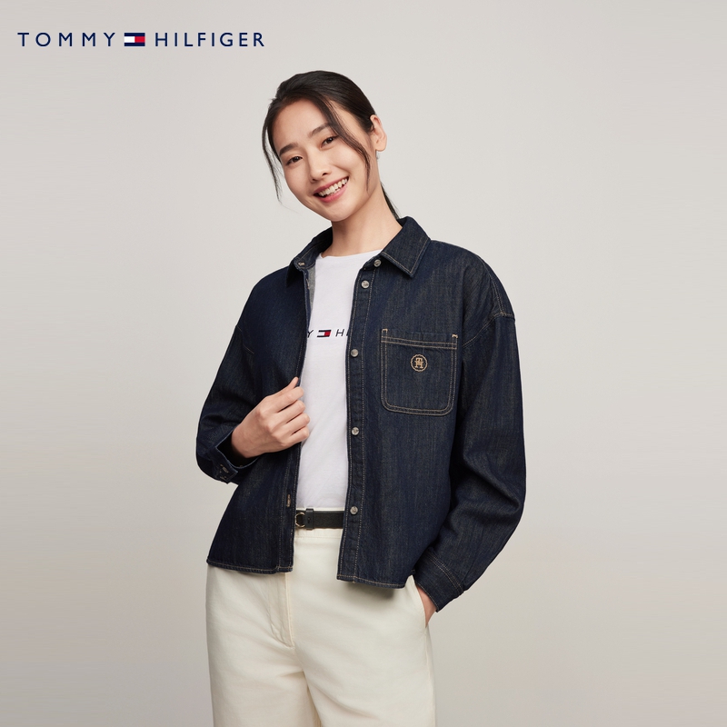 Tommy女装棉麻混纺宽松牛仔衬衫