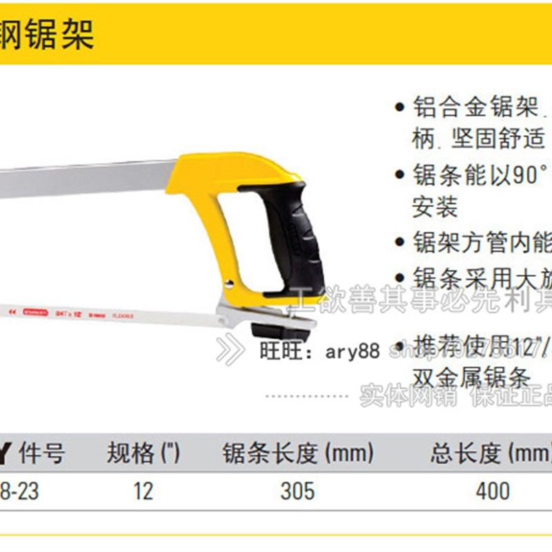 史丹利铝合金强力型方管钢锯架DIY手工锯条木工锯STHT20140-8-23