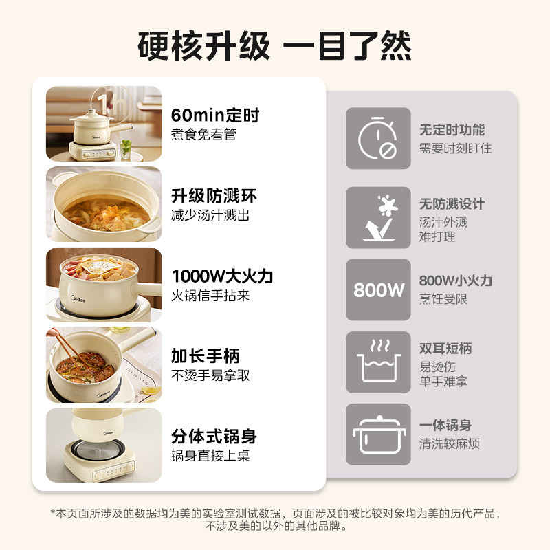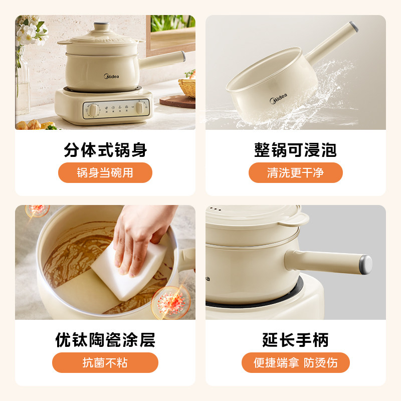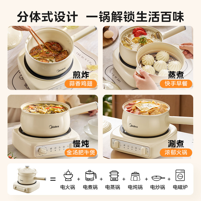 美的分体定时电煮锅电热火锅家用宿舍多功能礼物官方正品XZC2061