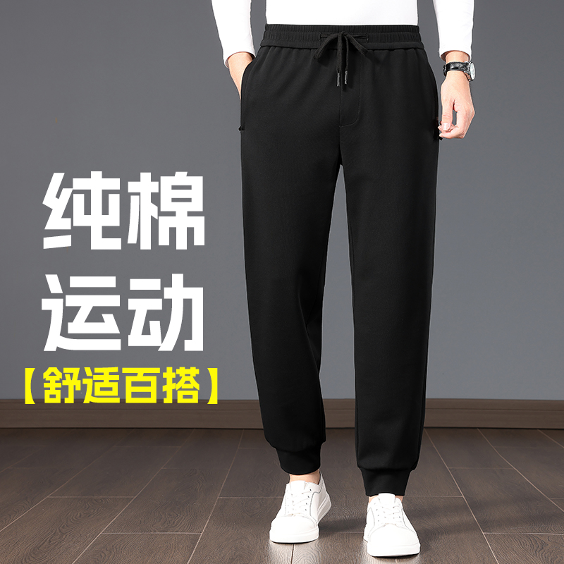 高端纯棉男士休闲裤秋冬款宽松收口卫裤冬季厚款加厚束脚运动裤子