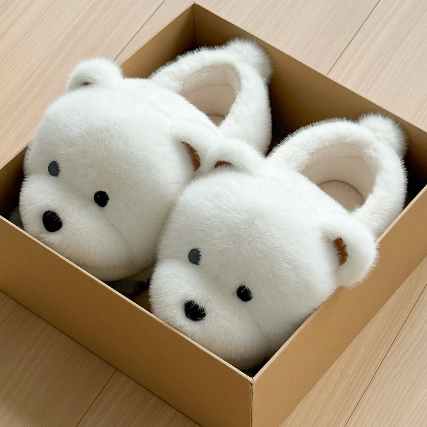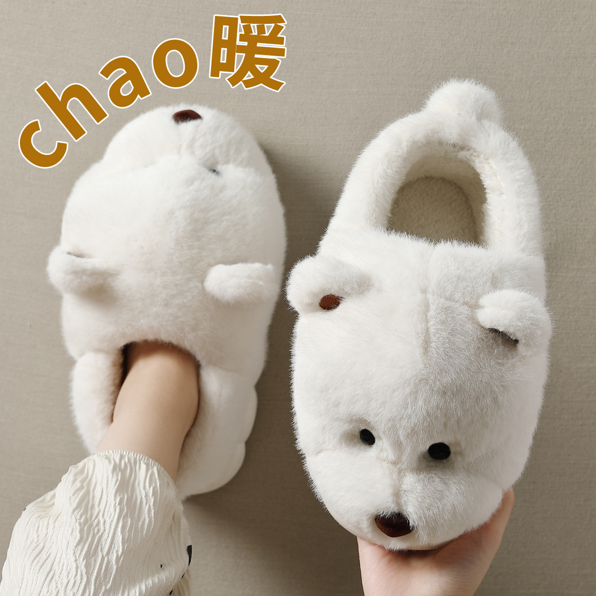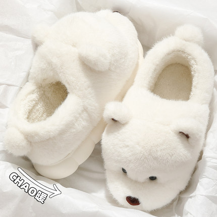 可爱小熊棉拖鞋女士冬季毛绒厚底