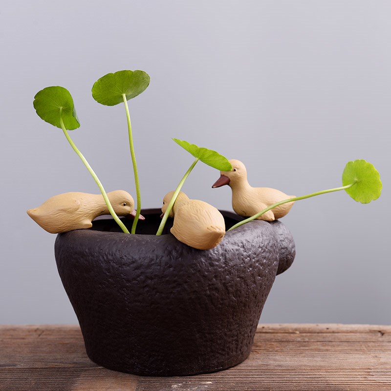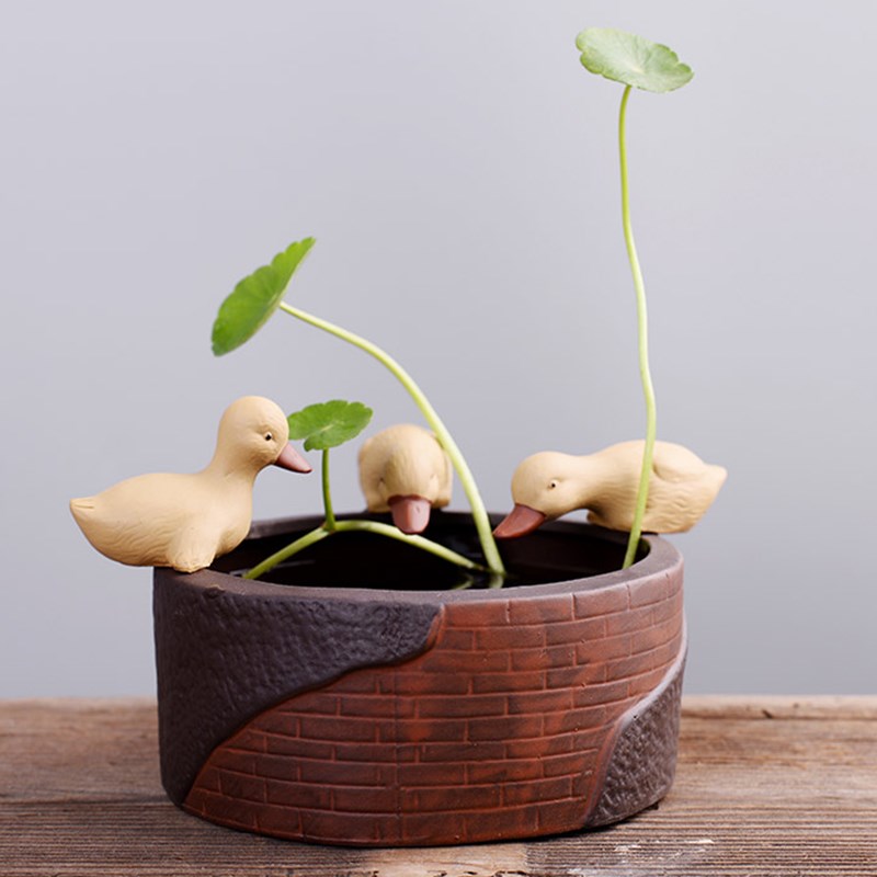 创意紫砂茶宠陶瓷铜钱草鸭子多肉水培摆件简约现代桌面花盆烟灰缸