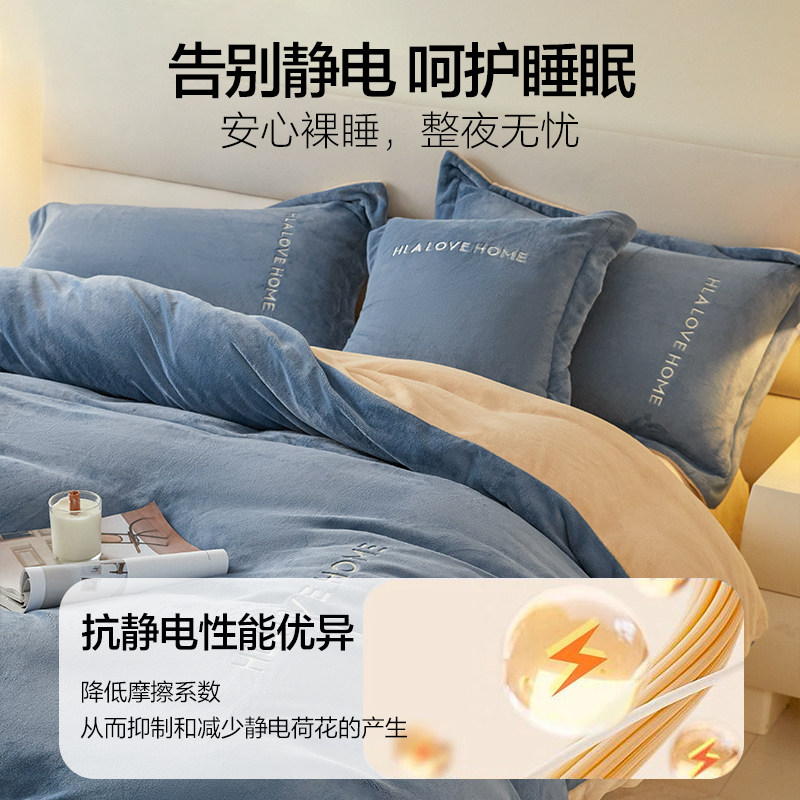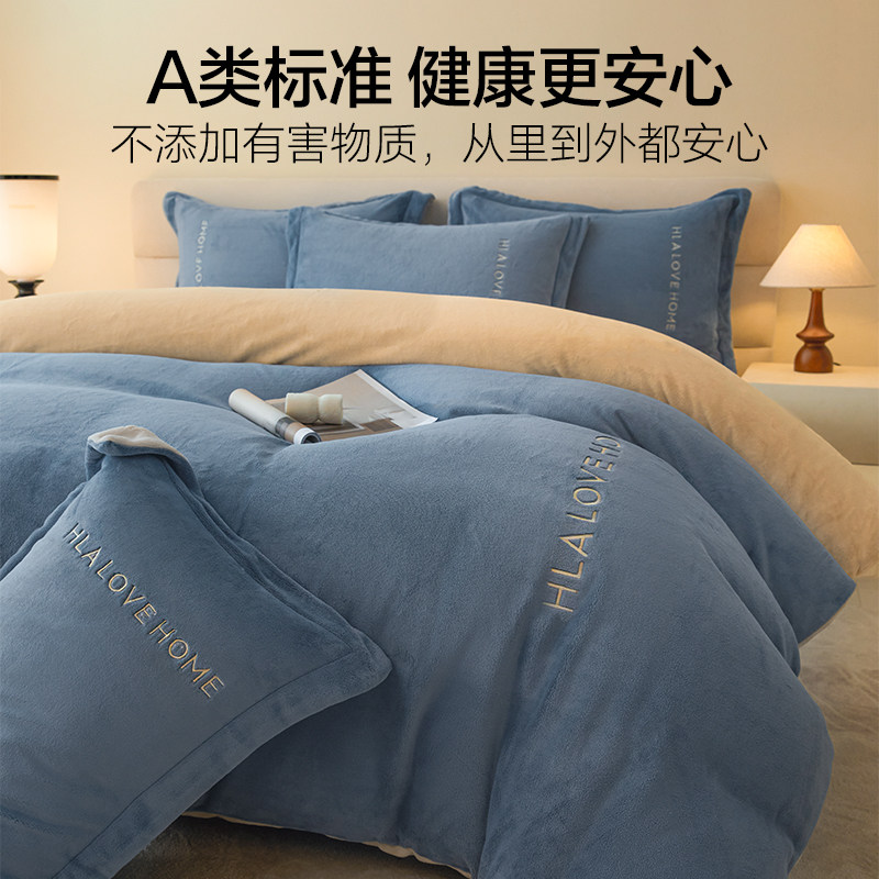 海澜之家牛奶绒四件套珊瑚绒被套法兰绒床单三件套加厚秋冬季床品