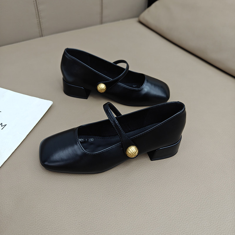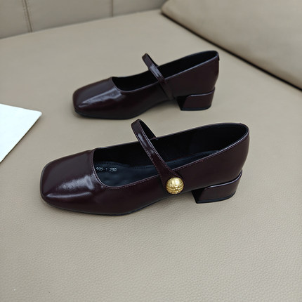 粗跟中跟复古百搭单鞋女2025新款时尚韩系方头魔术贴玛丽珍小皮鞋