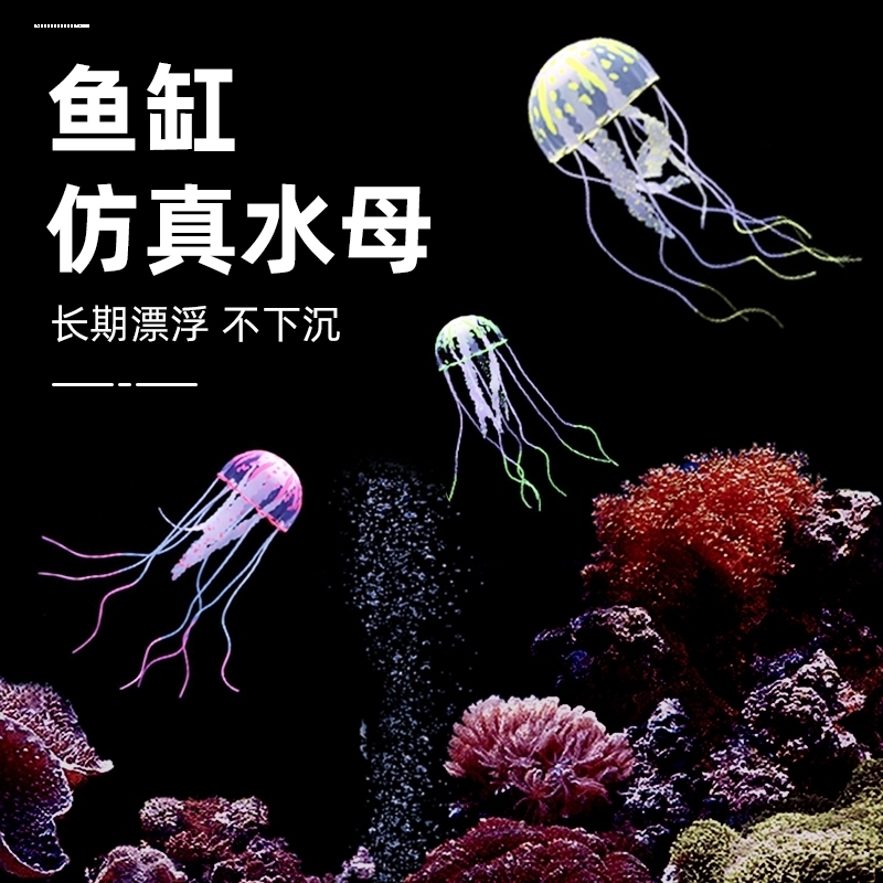 包邮鱼缸造景装饰品仿真水母珊瑚石头海水缸布景水草荧光蘑菇荷叶