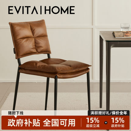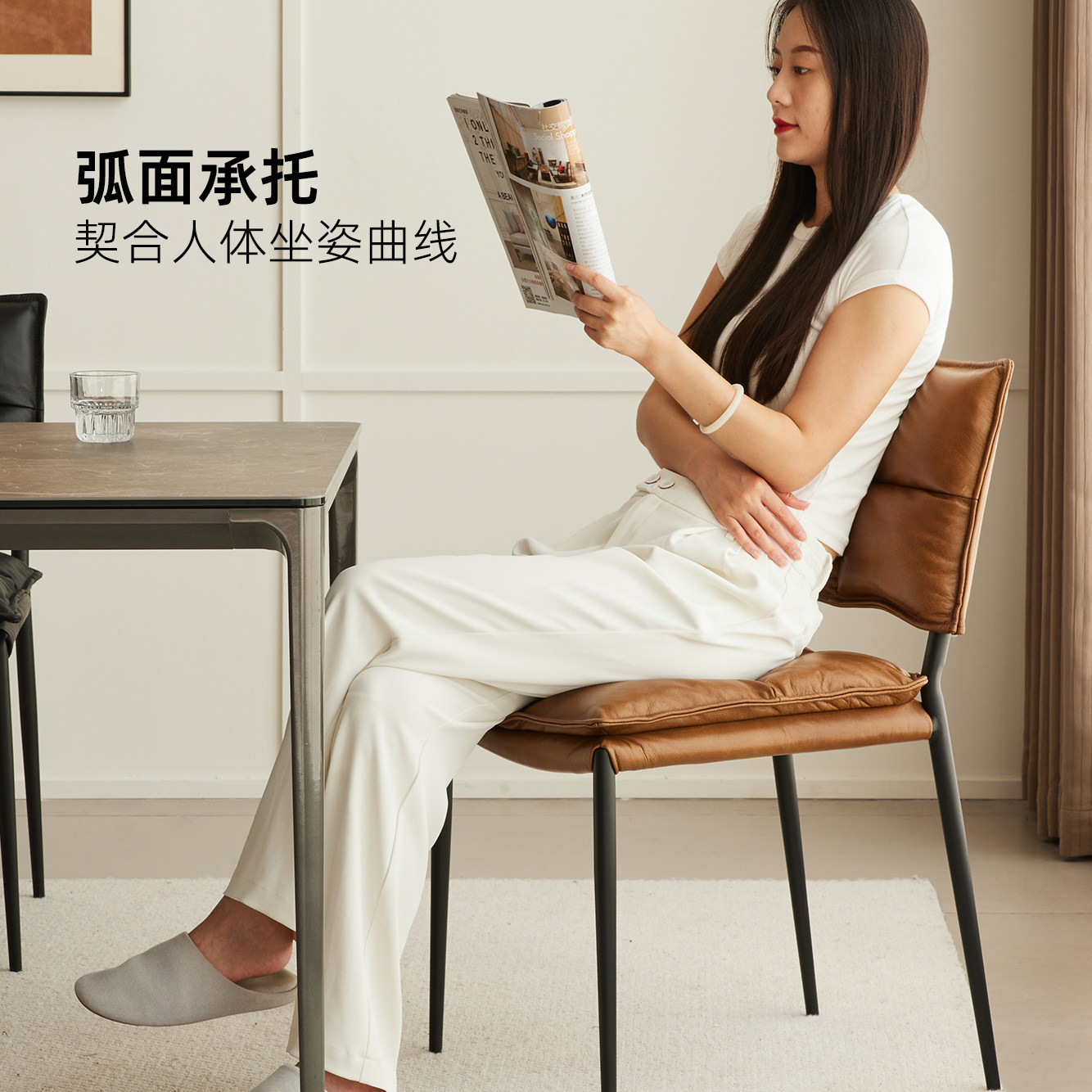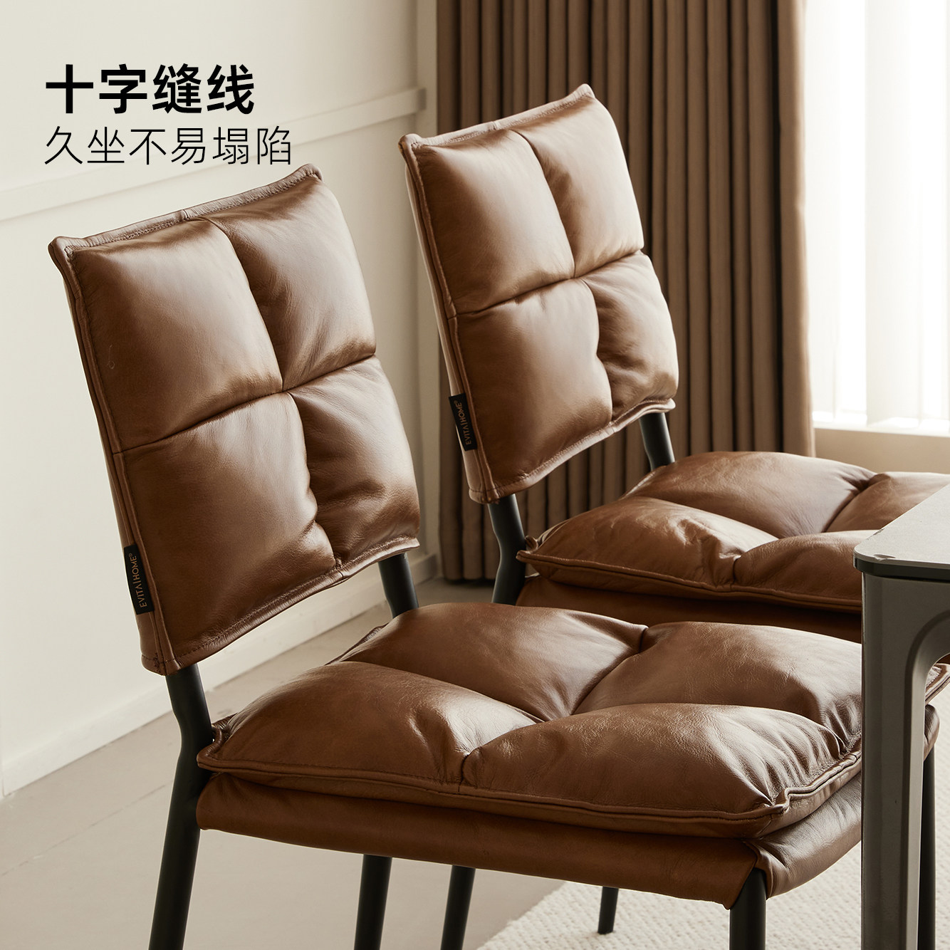 凯尔特真皮餐椅轻奢高级感2025新款家用靠背椅复古中古风餐厅椅子