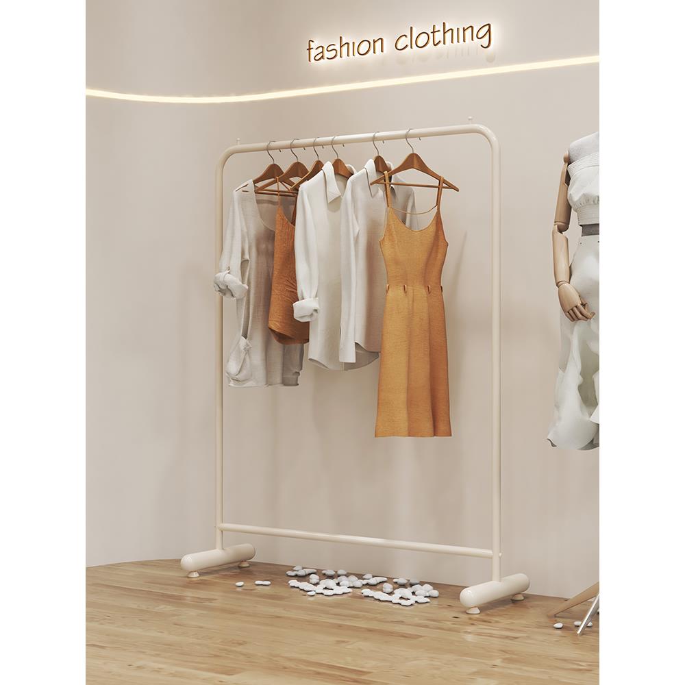 服装店专用展示架陈列架挂衣架不锈钢女装店奶白色落地式衣架货架