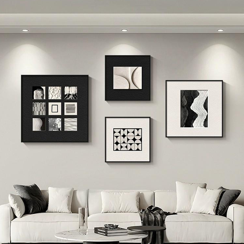 简约黑白抽象客厅装饰画高级感沙发背景墙面壁画餐厅卧室组合挂画