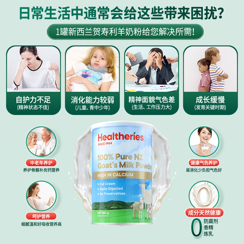 Healtheries贺寿利羊奶粉新西兰进口成人中老年纯羊奶粉官方正品