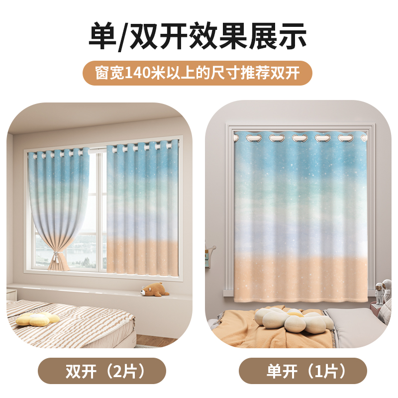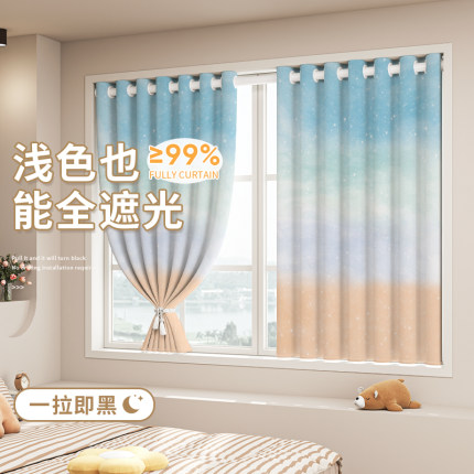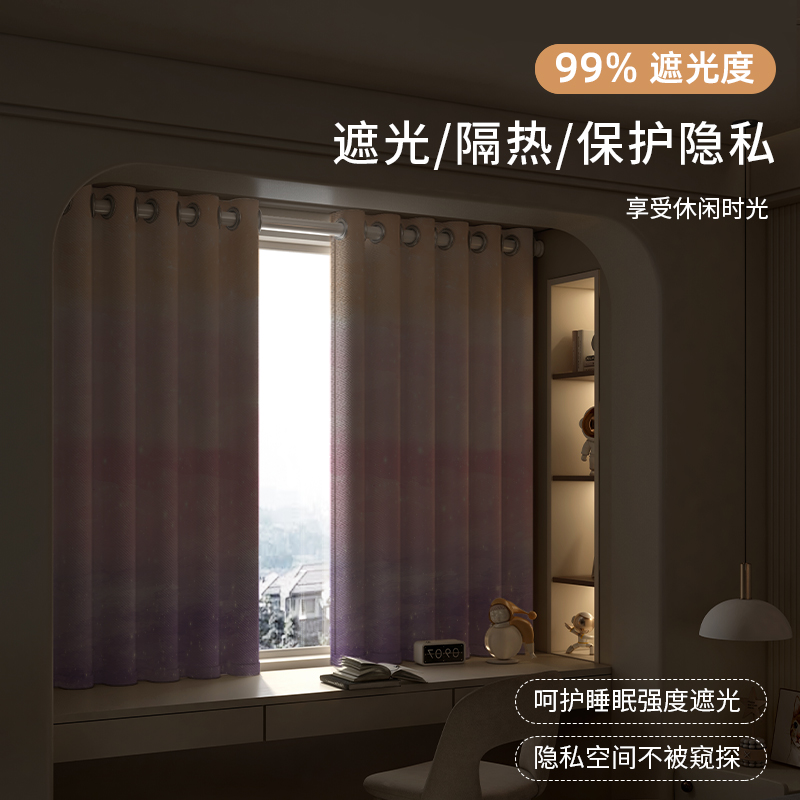 女生卧室窗帘全遮光2025新款儿童房轻奢少女公主风飘窗免打孔高端