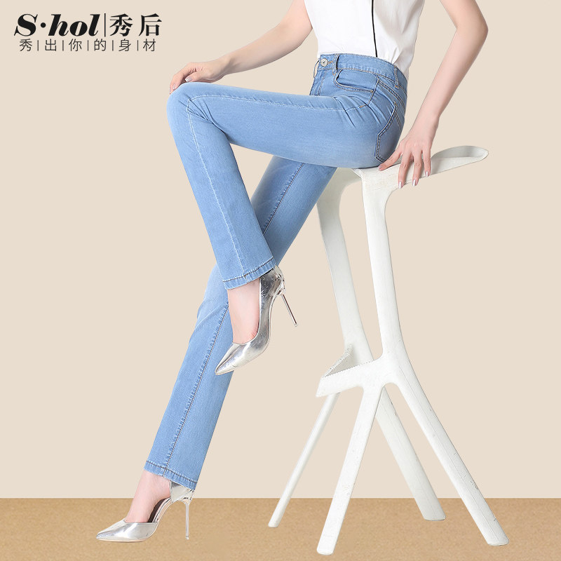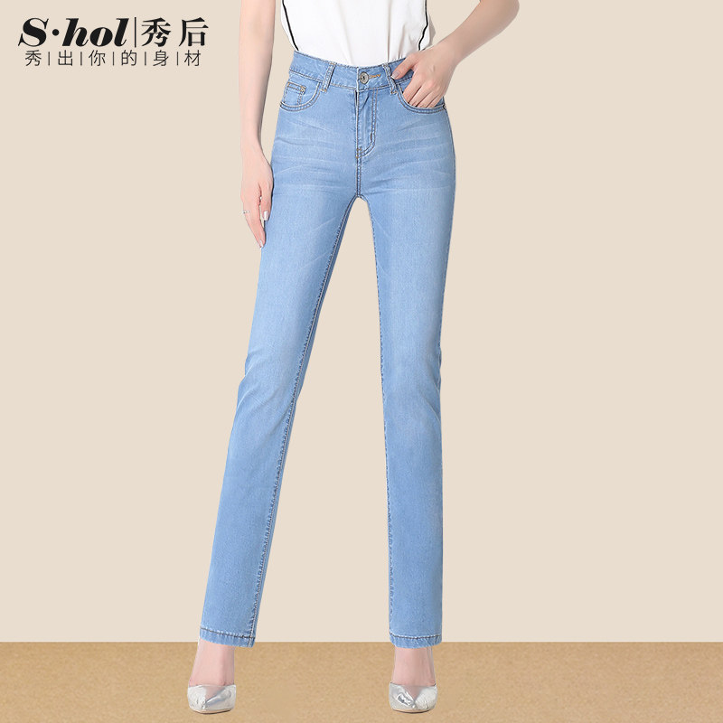 浅色夏季薄款直筒牛仔裤弹力秀后