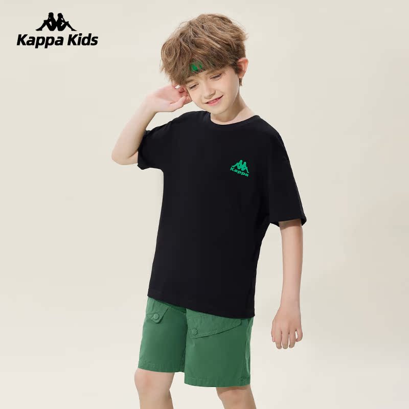 Kappa卡帕童装中大童时髦帅气T恤2023新款男童上衣儿童短袖夏装潮