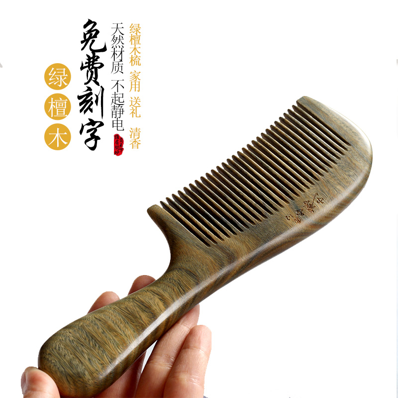 小李子天然正品绿檀木梳女士长发专用儿童家用木质梳头宽细齿梳子